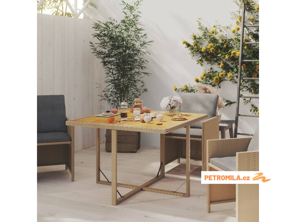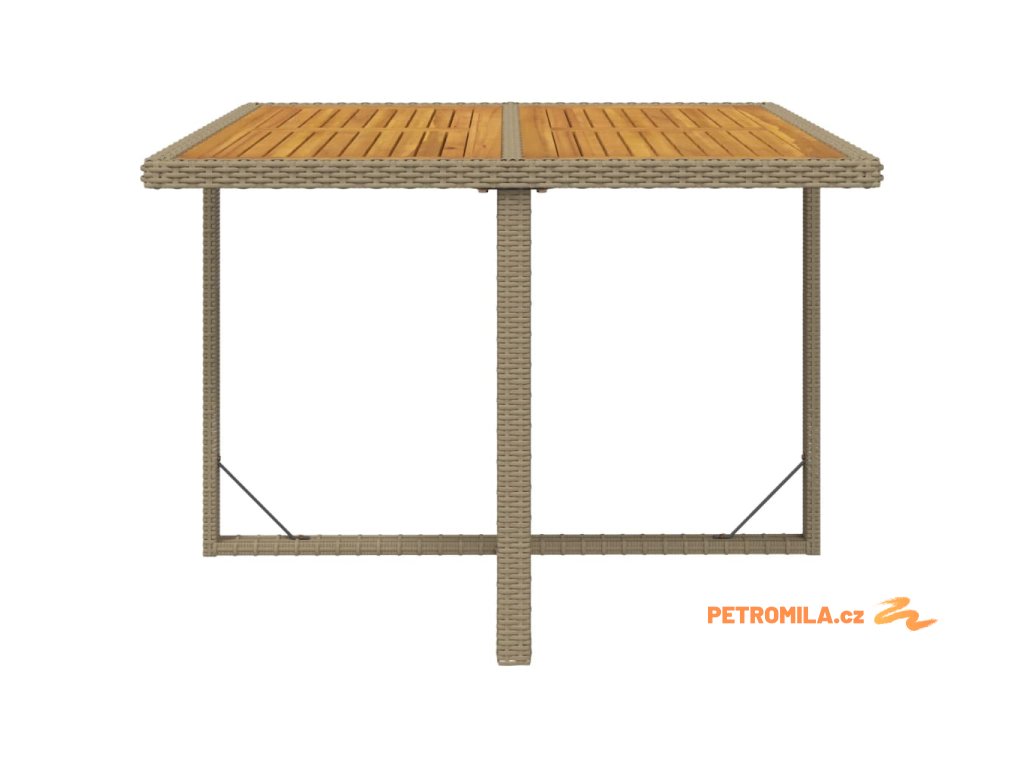 Zahradní stůl béžový 109x107x74 cm polyratan a masivní akácie