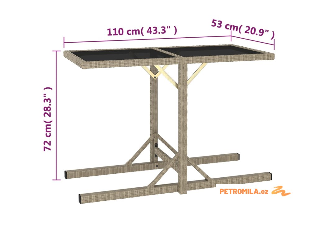 Zahradní stůl béžový 110 x 53 x 72 cm sklo a polyratan