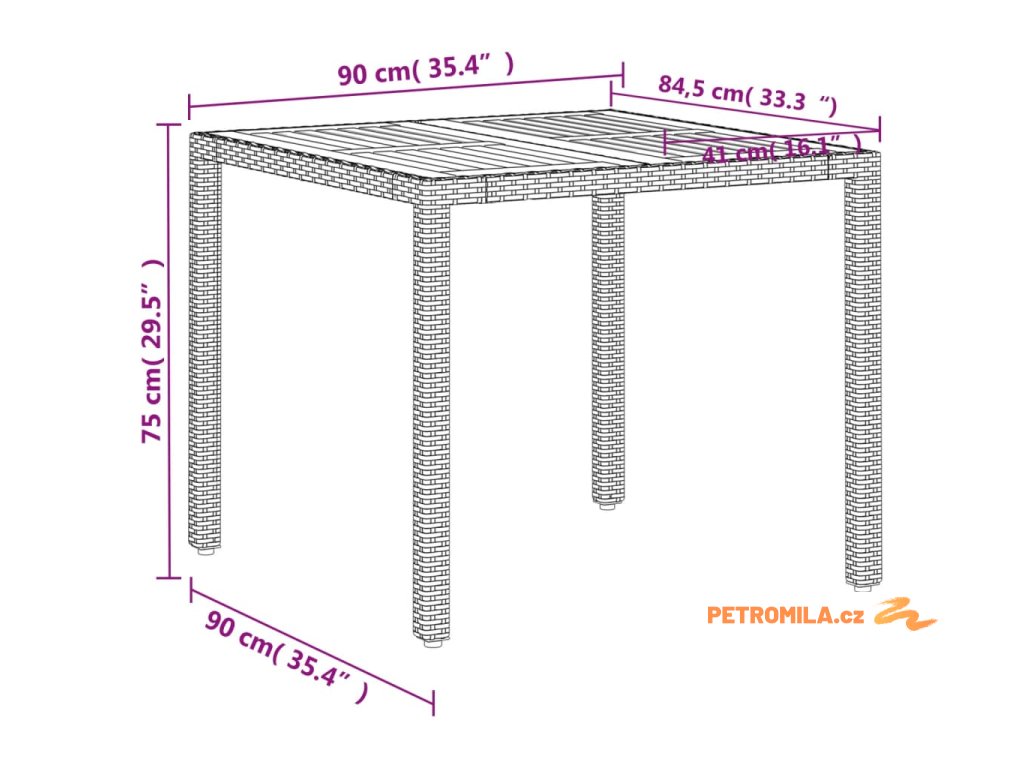 - Rozměry: 90 x 90 x 75 cm (D x Š x V)