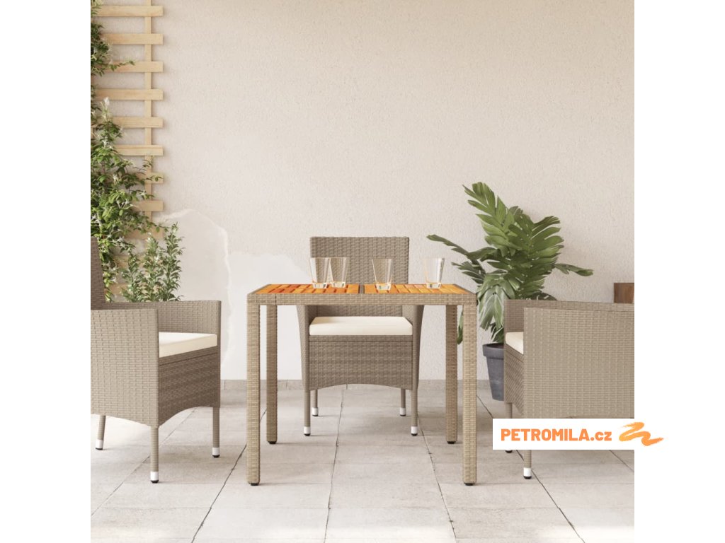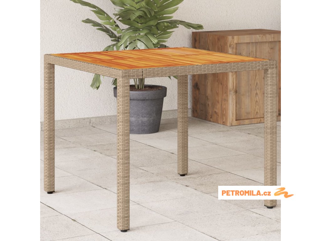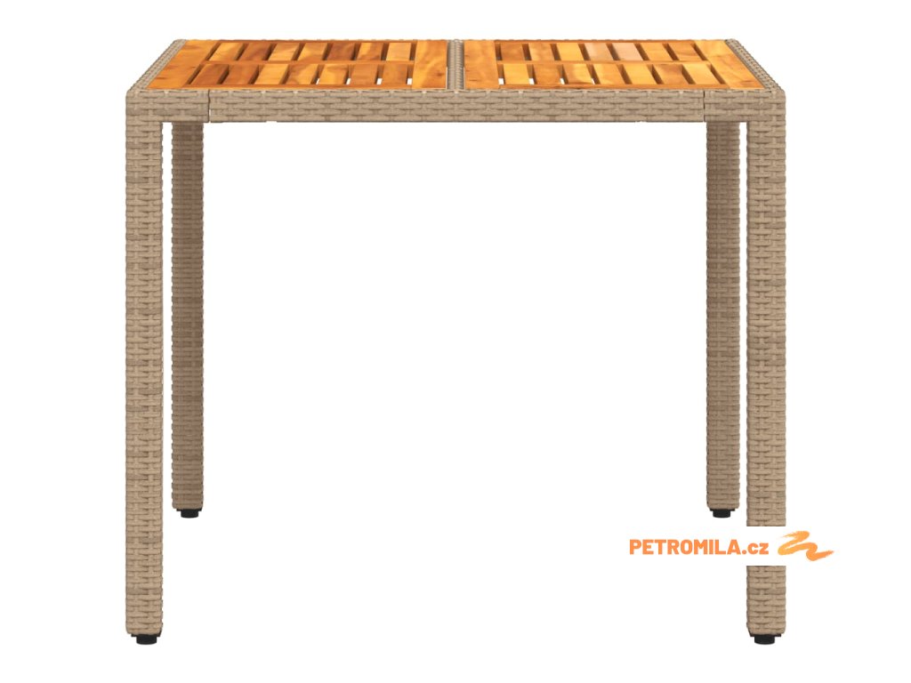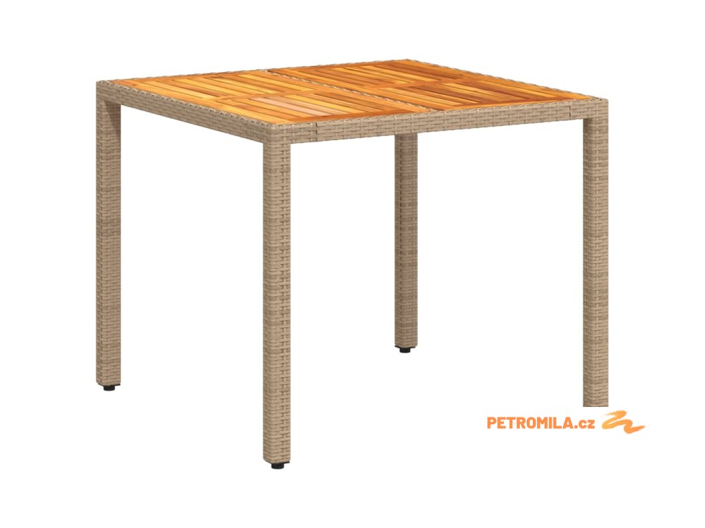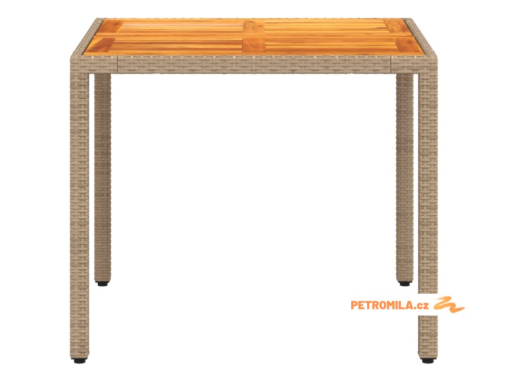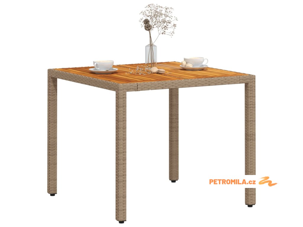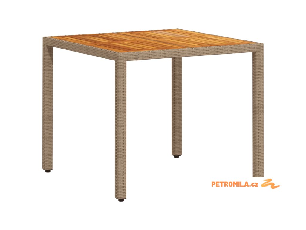 Zahradní stůl béžový 90 x 90 x 75 cm polyratan akáciové dřevo
