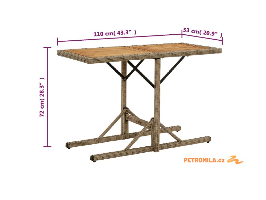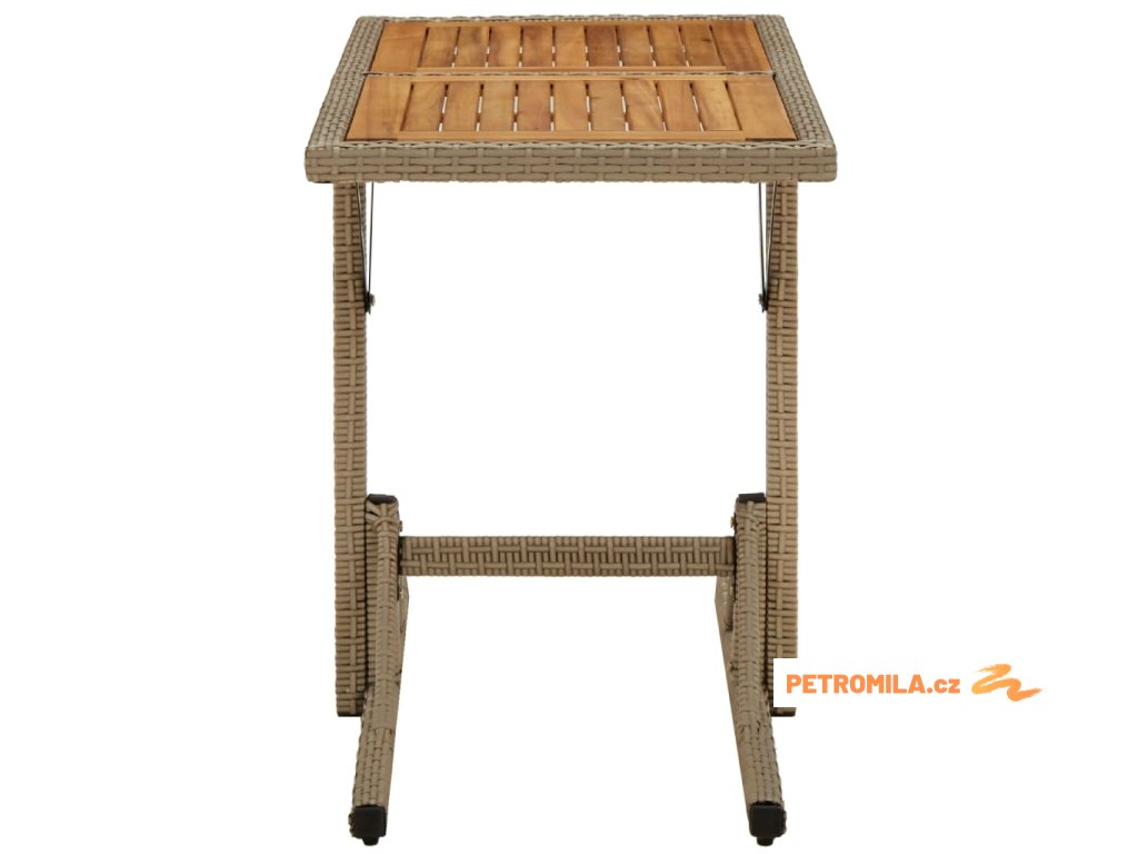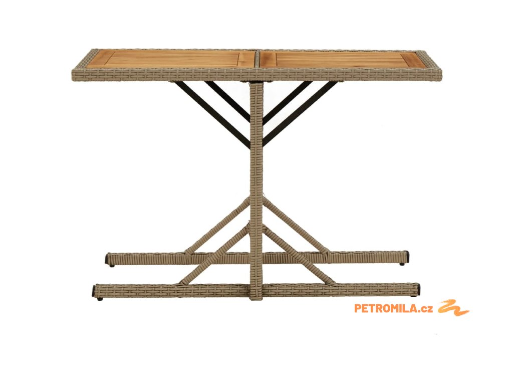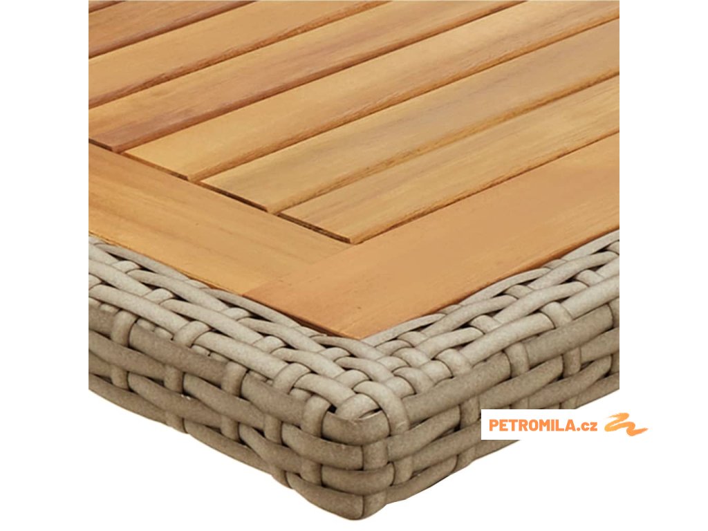 Zahradní stůl béžový masivní akáciové dřevo a polyratan