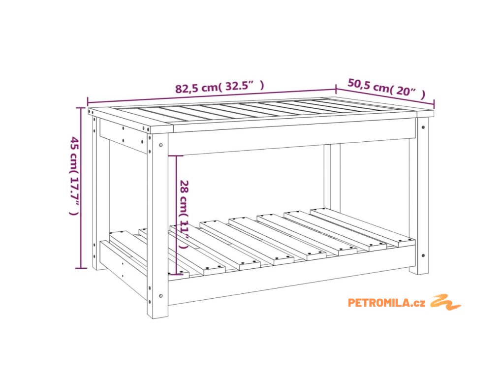 Zahradní stůl bílý 82,5 x 50,5 x 45 cm masivní borové dřevo