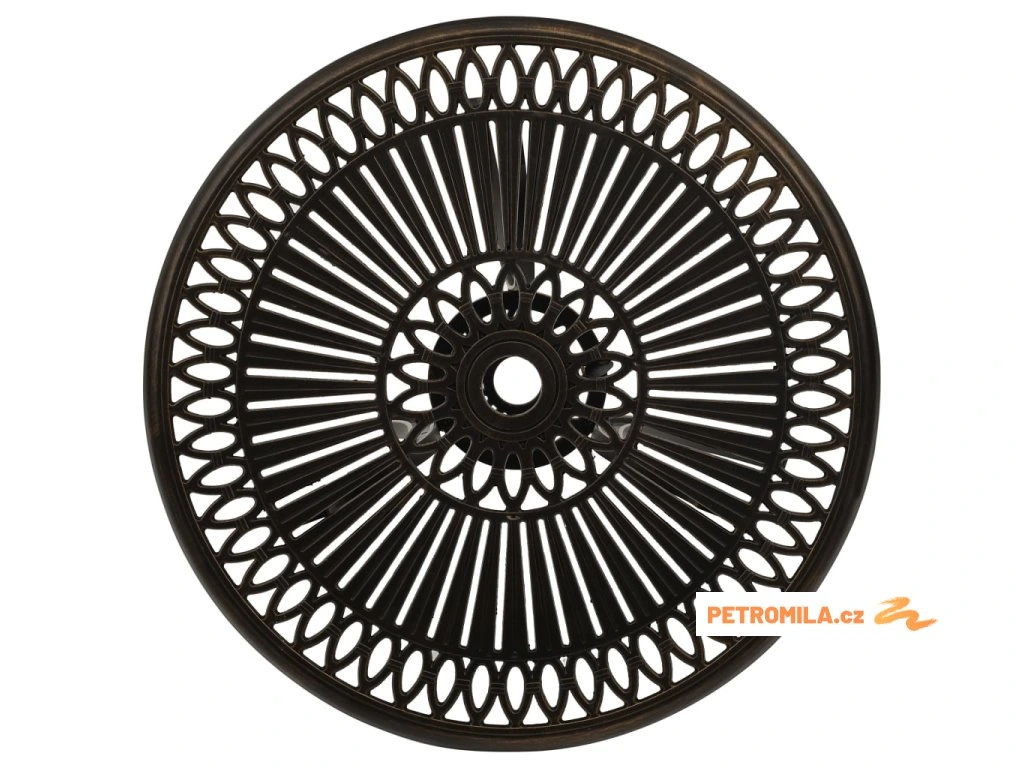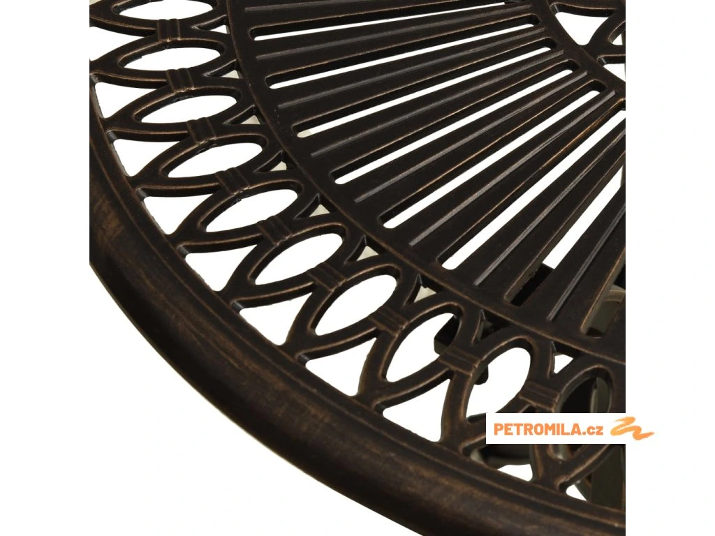 Čajový stolek je vyrobený z litého hliníku, takže je stabilní, hodně toho vydrží a skvěle se hodí ke každodennímu venkovnímu použití. Stolní deska je zdobená překrásnými vzory a zároveň vám výborně poslouží k pokládání nápojů, občerstvení a dalších potřeb. Tři samostatné nohy zaručují dobrou rovnováhu, a tím pádem i spolehlivé použití. Stolek na terasu má uprostřed také otvor, kam si můžete zasadit vlastní slunečník, aby vás ochránil před sluncem či deštěm.