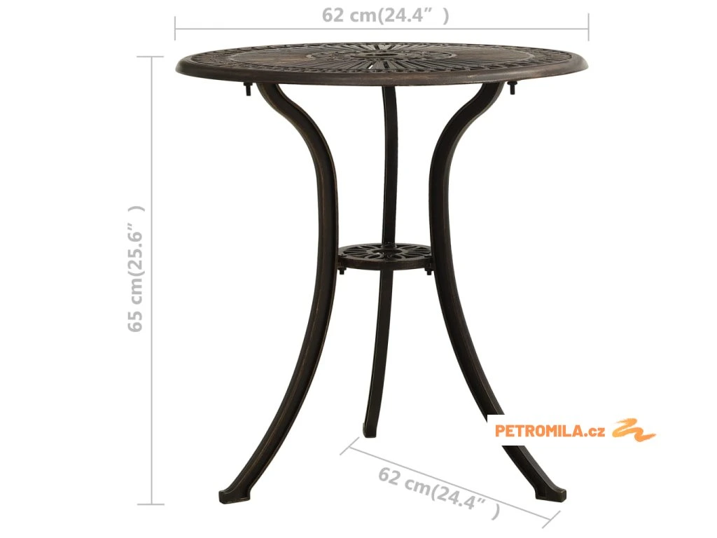 Zahradní stůl bronzový 62 x 62 x 65 cm litý hliník