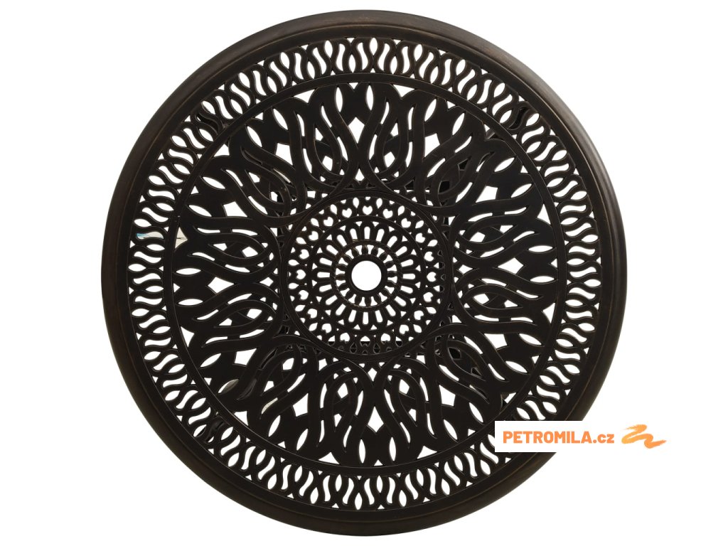 Čajový stolek je vyrobený z litého hliníku, takže je stabilní, hodně toho vydrží a skvěle se hodí ke každodennímu venkovnímu používání. Stolní deska má unikátní design s otvory a zároveň vám výborně poslouží k pokládání nápojů, občerstvení a dalších nezbytností. Čtyři samostatné nohy zaručují dobrou rovnováhu, a tím pádem i spolehlivé užívání. Stolek na terasu má uprostřed také otvor, kam můžete zasadit vlastní slunečník, aby vás ochránil před sluncem či deštěm.