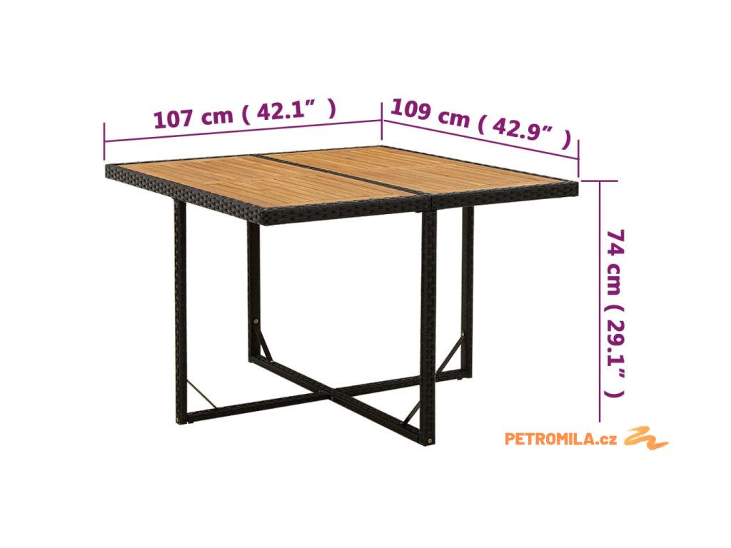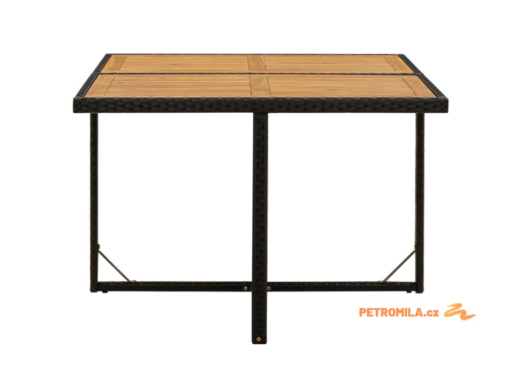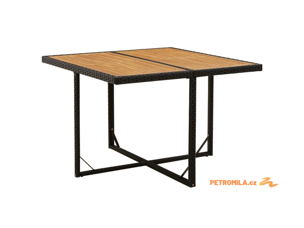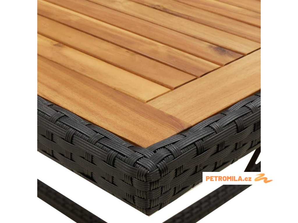 Zahradní stůl černý 109x107x74 cm polyratan a masivní akácie