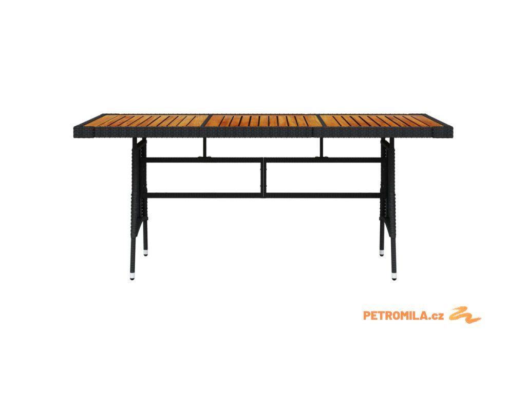 Zahradní stůl černý 160 x 70 x 72 cm polyratan a masivní akácie