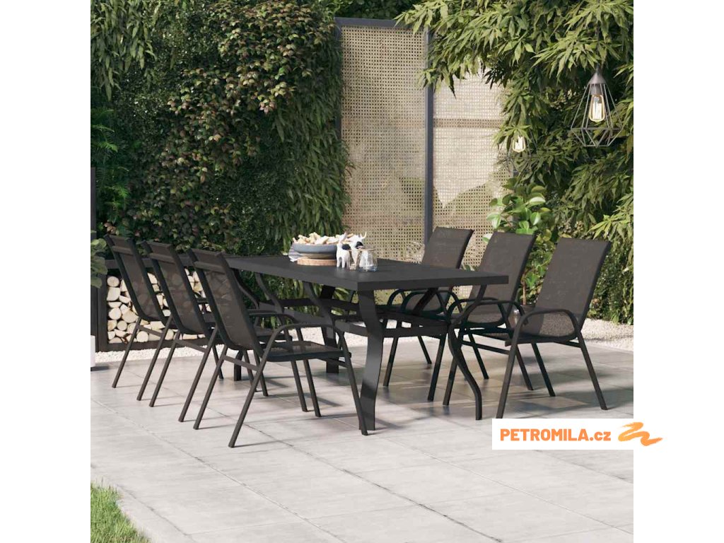 Zahradní stůl černý 180 x 80 x 70 cm ocel a sklo