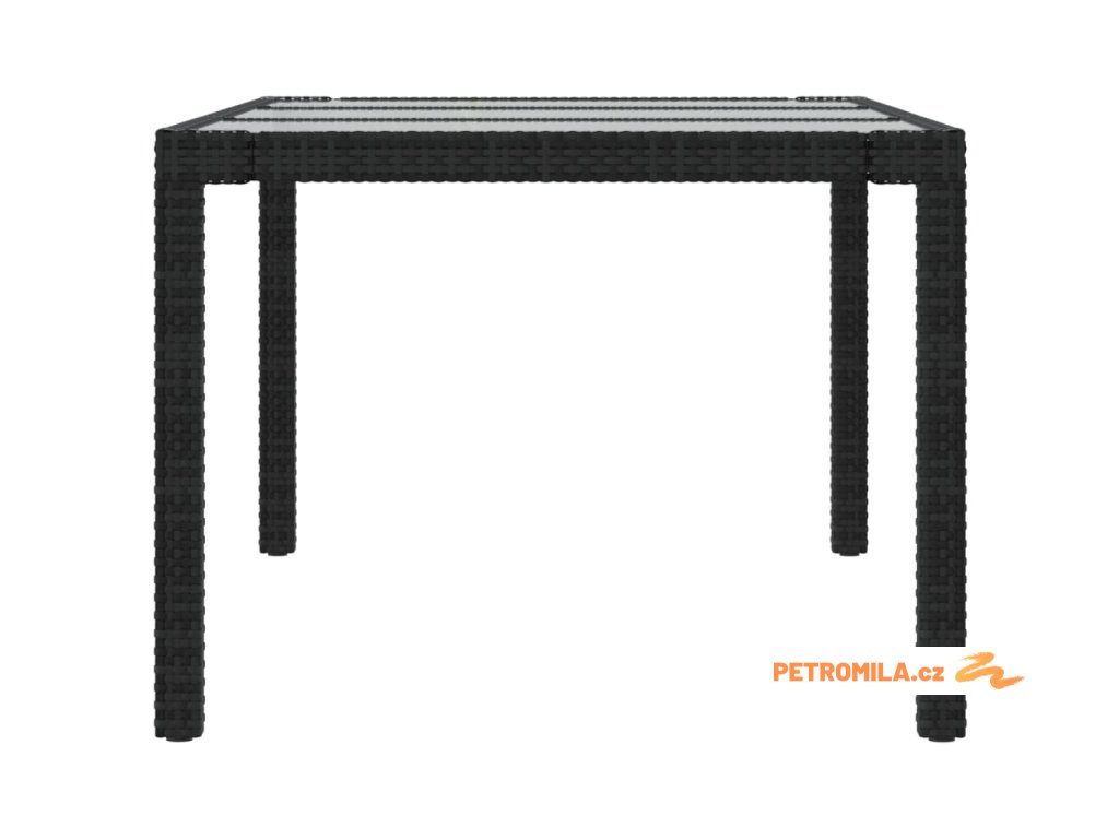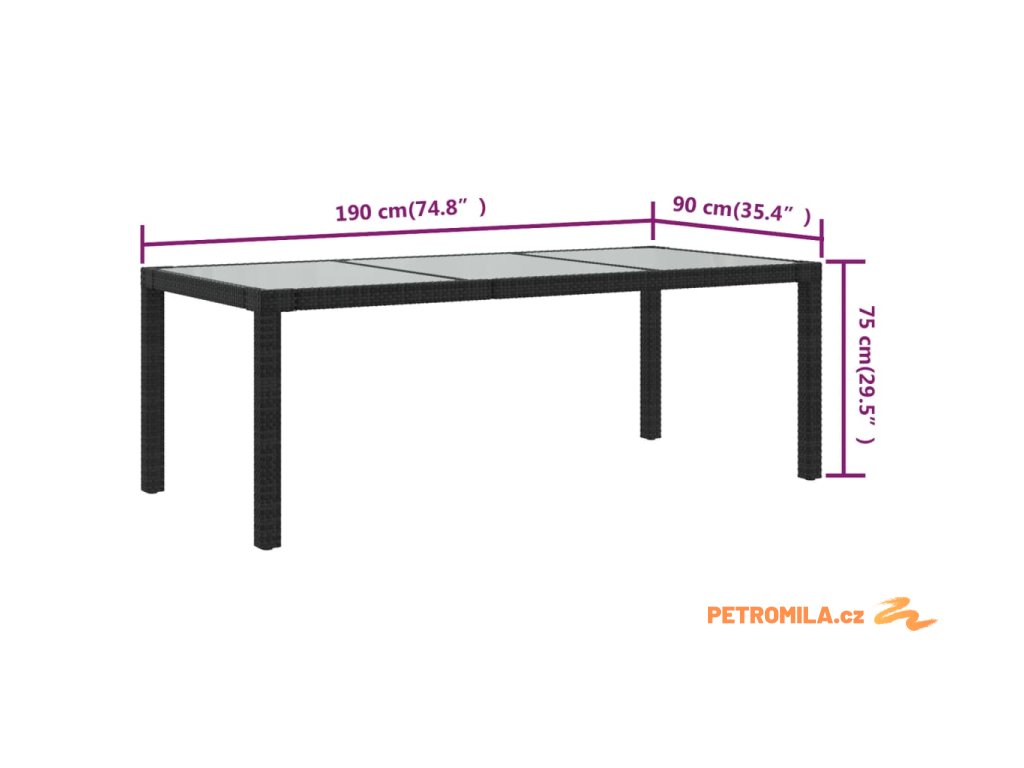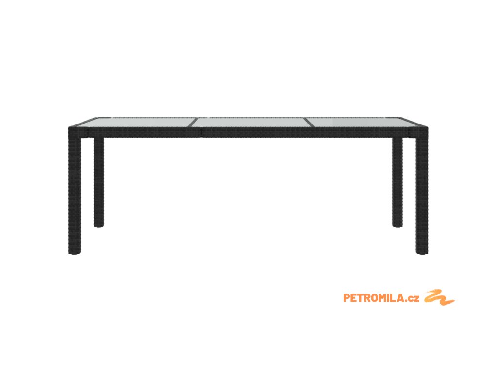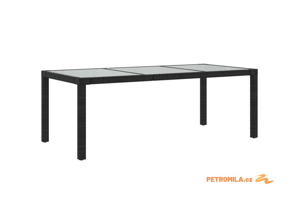 Zahradní stůl černý 190 x 90 x 75 cm tvrzené sklo a polyratan