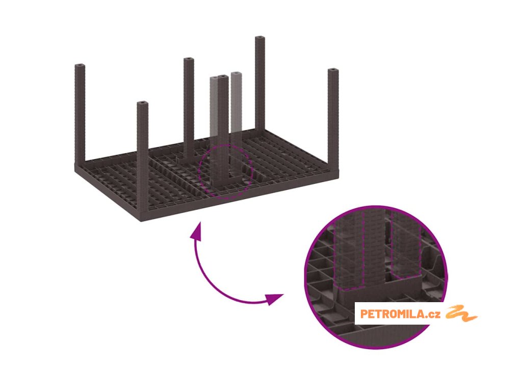 - Kvalitní poly ratan: Tento stůl je vyrobený z prvotřídního poly ratanu, odolný proti slunci a vodě. Na rozdíl od starého proutěného nábytku nevybledne, takže si zachovává svůj vzhled po celý rok.