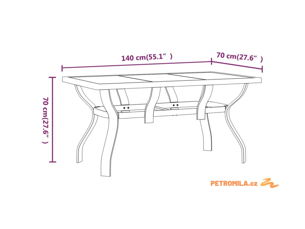 Zahradní stůl hnědočerný 140 x 70 x 70 cm ocel a sklo