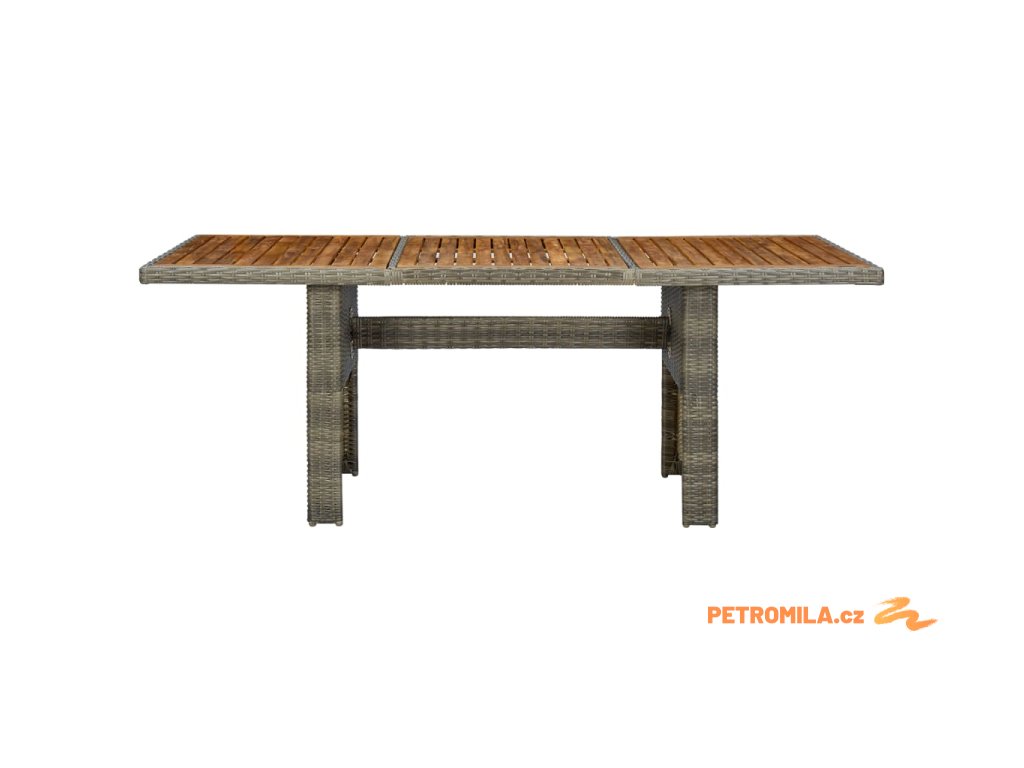 Kulatý PE ratan, ze kterého je tento venkovní stůl vyrobený, se snadno čistí a disponuje dlouhou životností. Ocelový rám s práškovým nástřikem a deska stolu z masivního akáciového dřeva jsou pevné a stabilní. Masivní deska stolu je ideální pro umístění nebo vystavení různých doplňků či drobností. Tento stůl má navíc lehkou konstrukci a snadno se s ním manipuluje.
