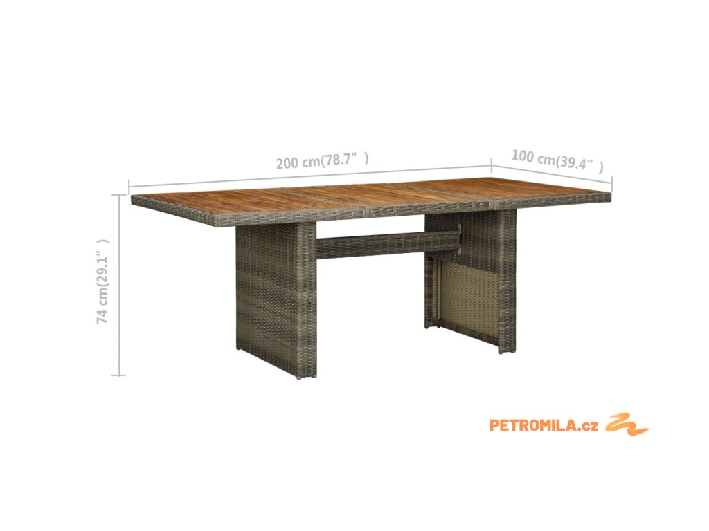 - Rozměry: 200 x 100 x 74 cm (Š x H x V)