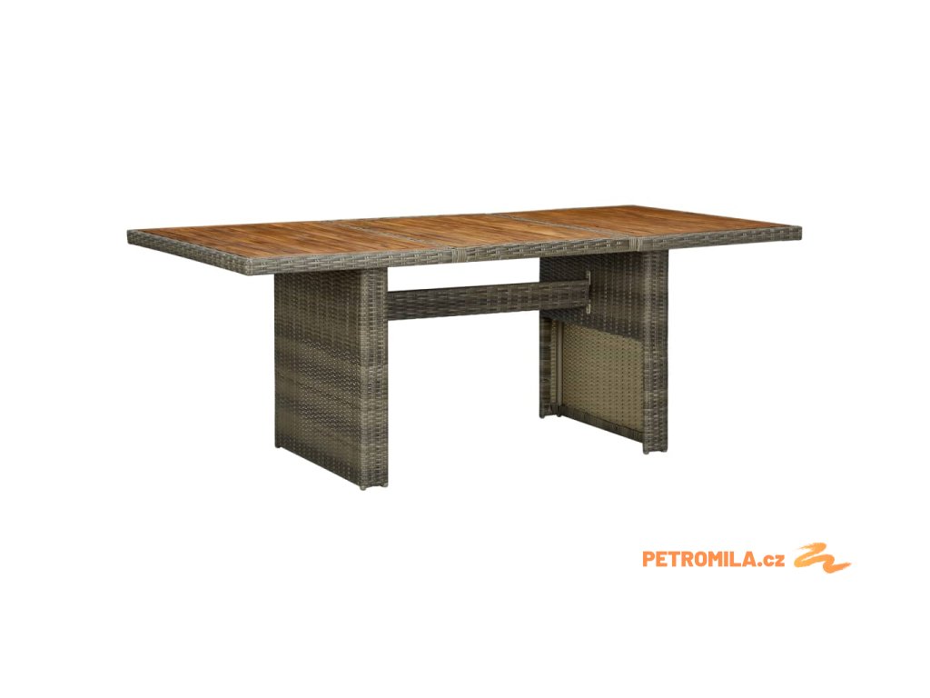 Zahradní stůl hnědý polyratan a masivní akáciové dřevo