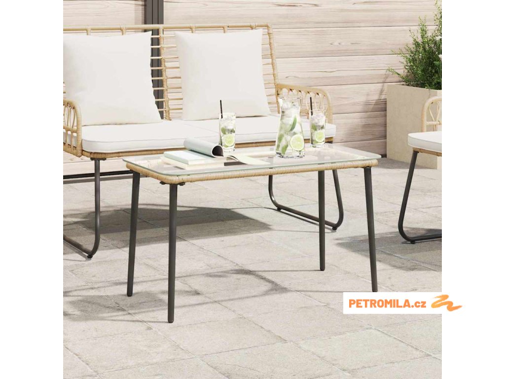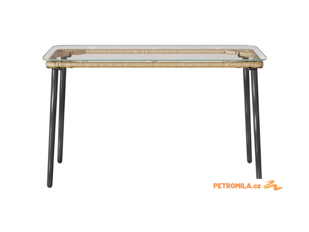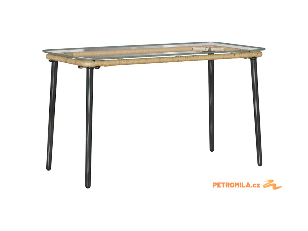 Tento moderní zahradní stůl spojuje jednoduchost a praktičnost. Je navržen tak, aby se hodil do venkovního prostředí a má minimalistický vzhled s polyratanovým povrchem.