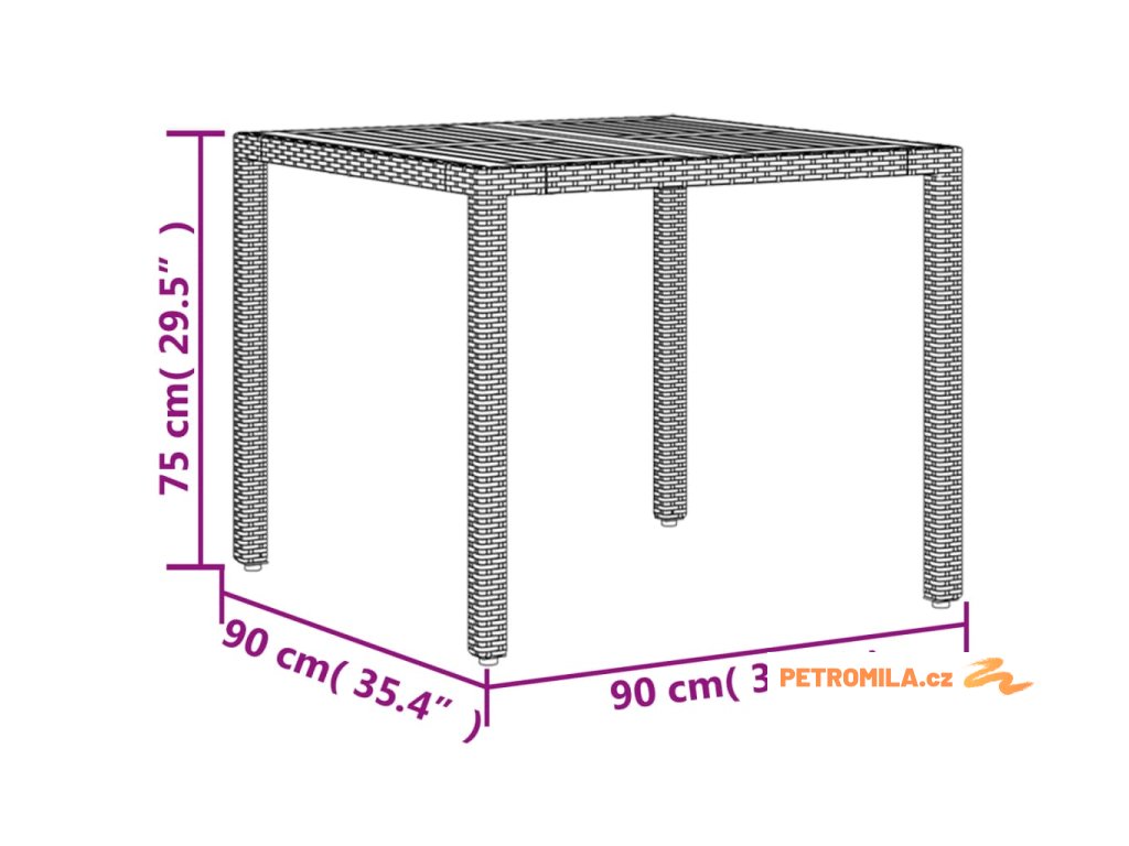 - Rozměry: 90 x 90 x 75 cm (D x Š x V)