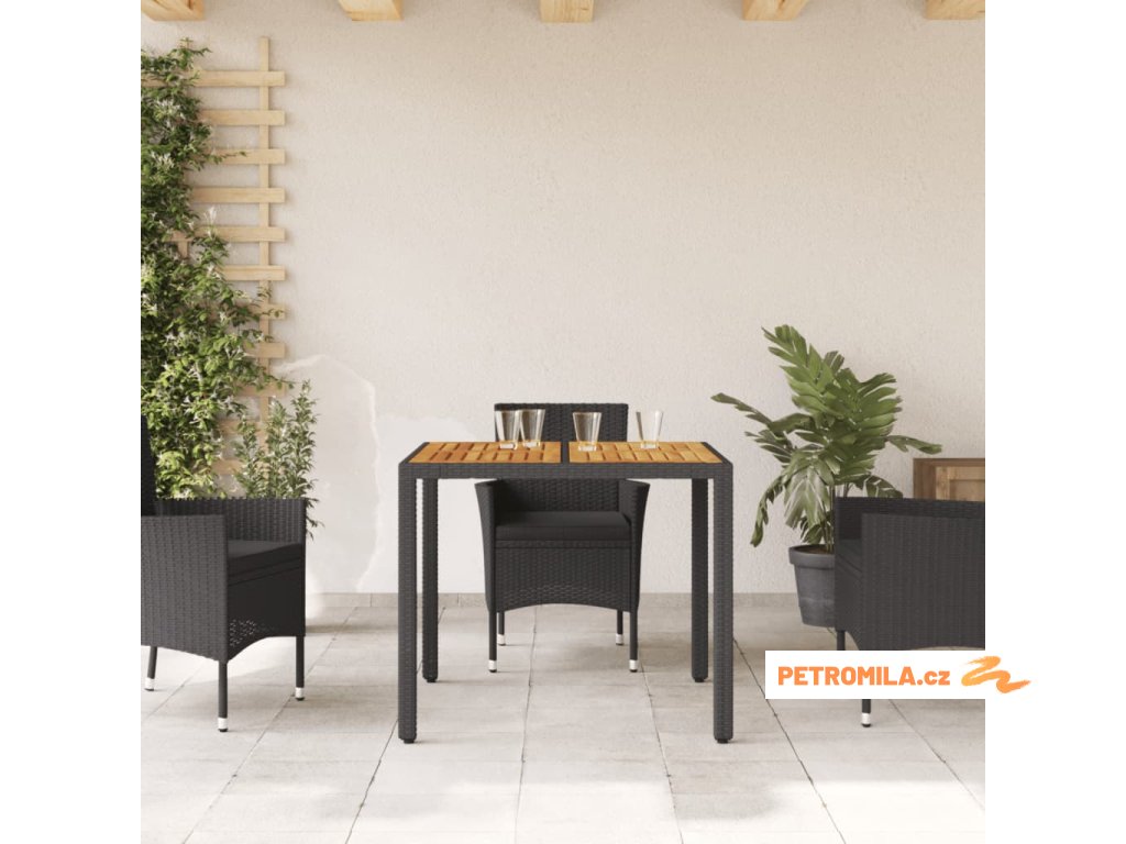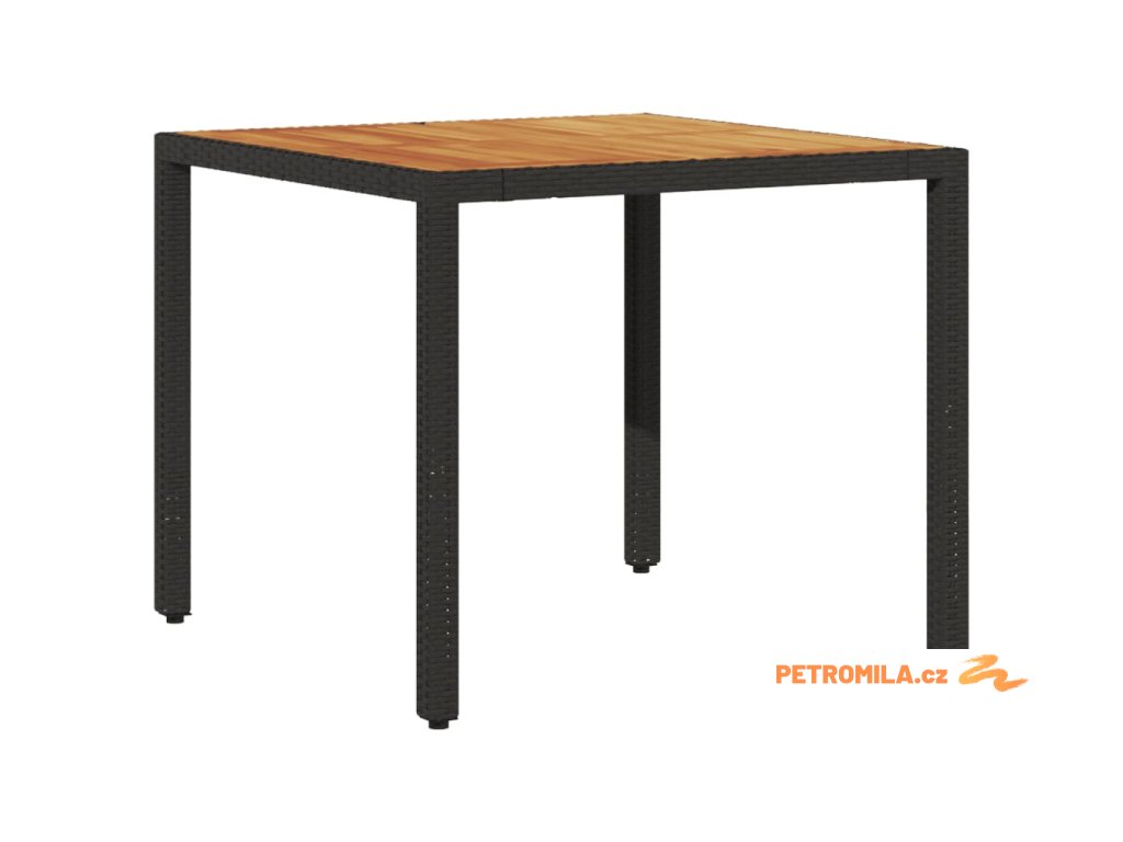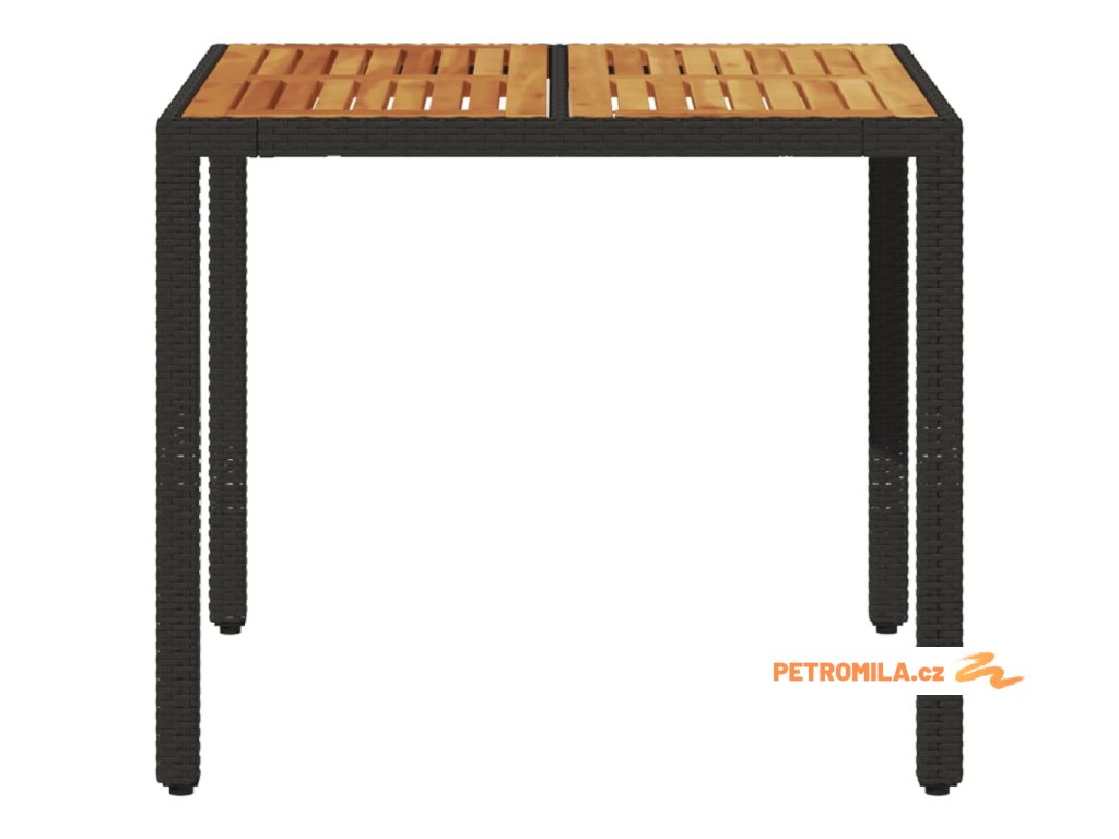 Zahradní stůl s akáciovou deskou černý 90x90x75 cm polyratan