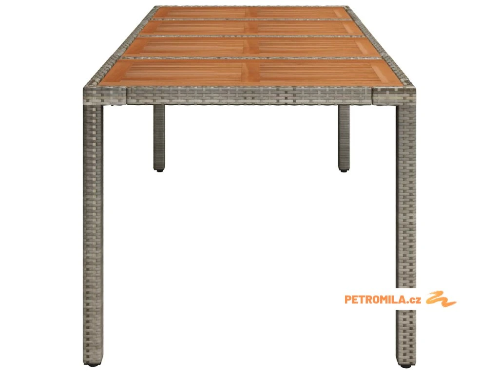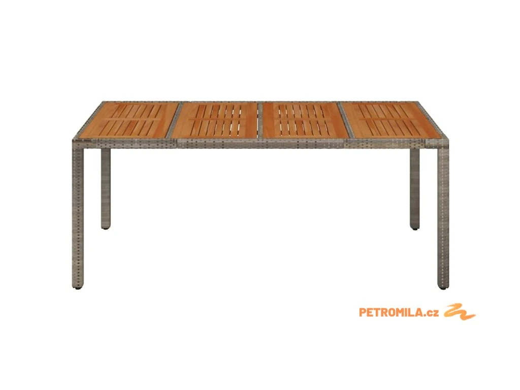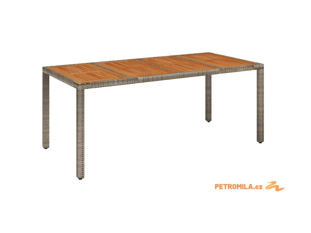 Zahradní stůl s dřevěnou deskou šedý 190 x 90 x 75 cm polyratan