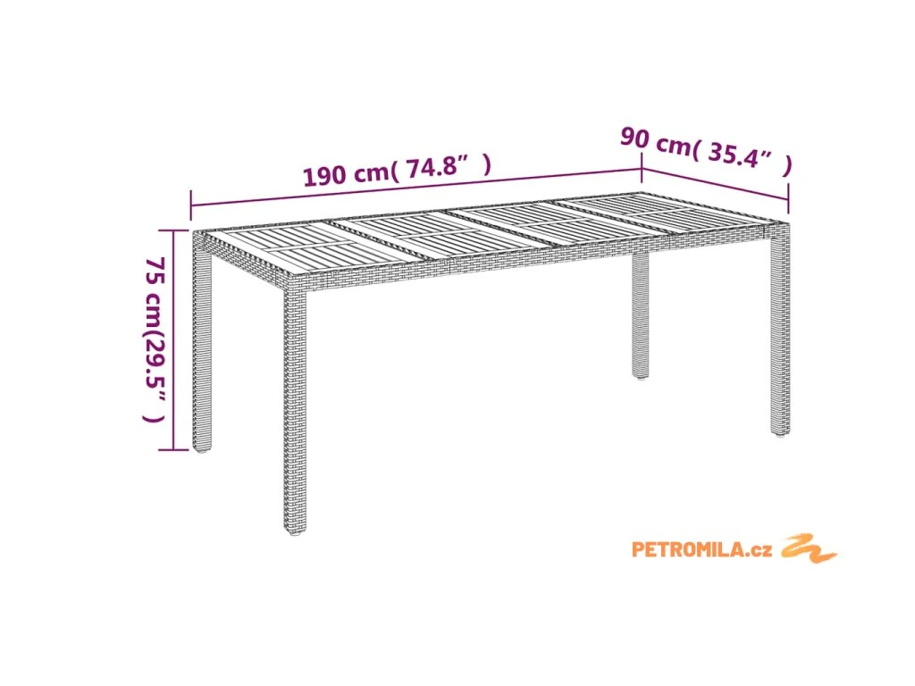 - Rozměry: 190 x 90 x 75 cm (Š x H x V)