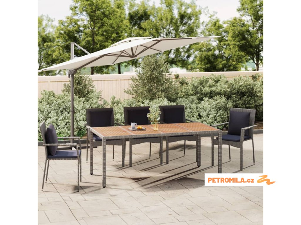 Zahradní stůl s dřevěnou deskou šedý polyratan a masivní akácie