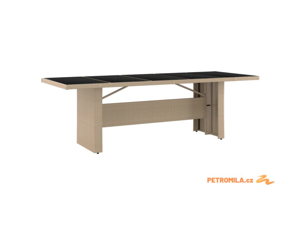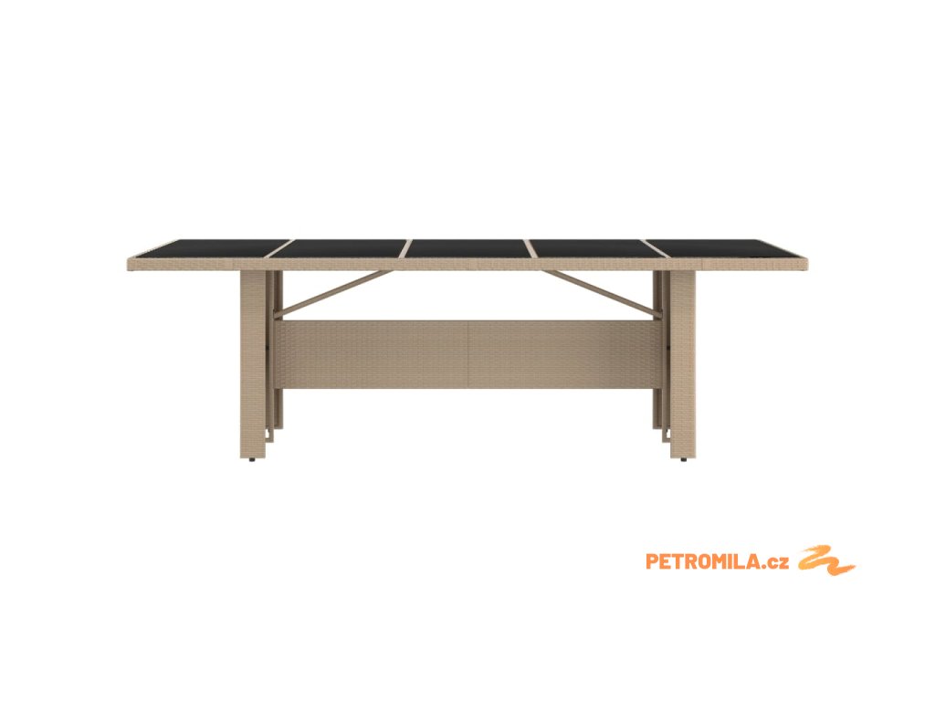 Zahradní stůl se skleněnou deskou béžový polyratan a sklo