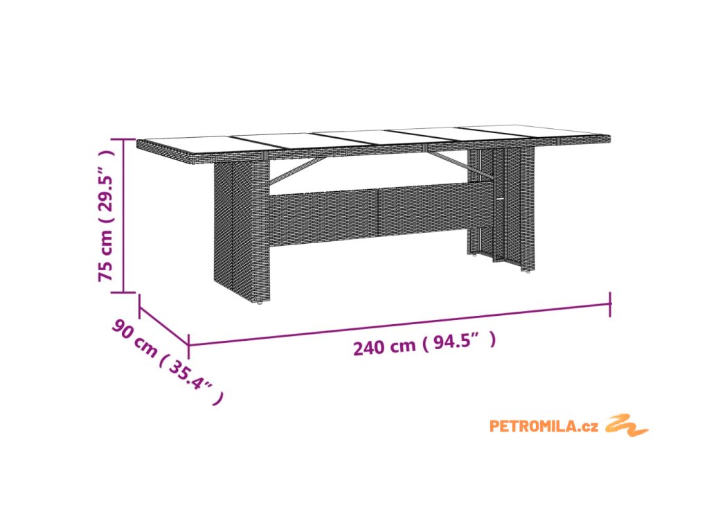 - Rozměry: 240 x 90 x 75 cm (Š x H x V)