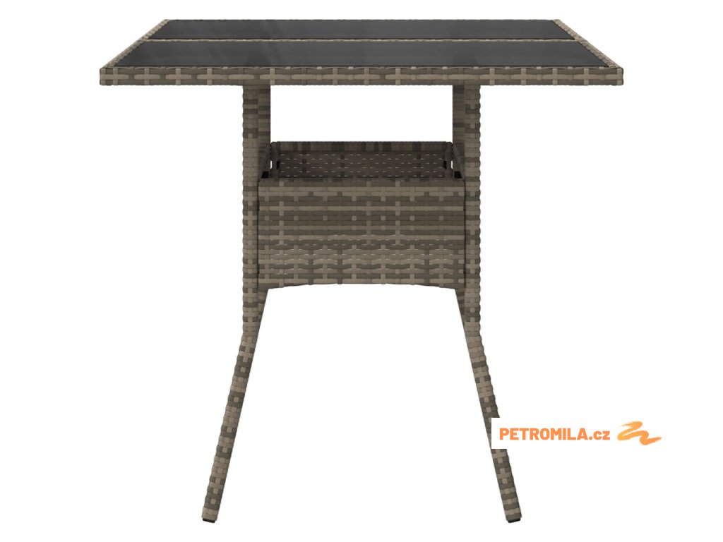 Zahradní stůl se skleněnou deskou šedý 80x80x75 cm polyratan
