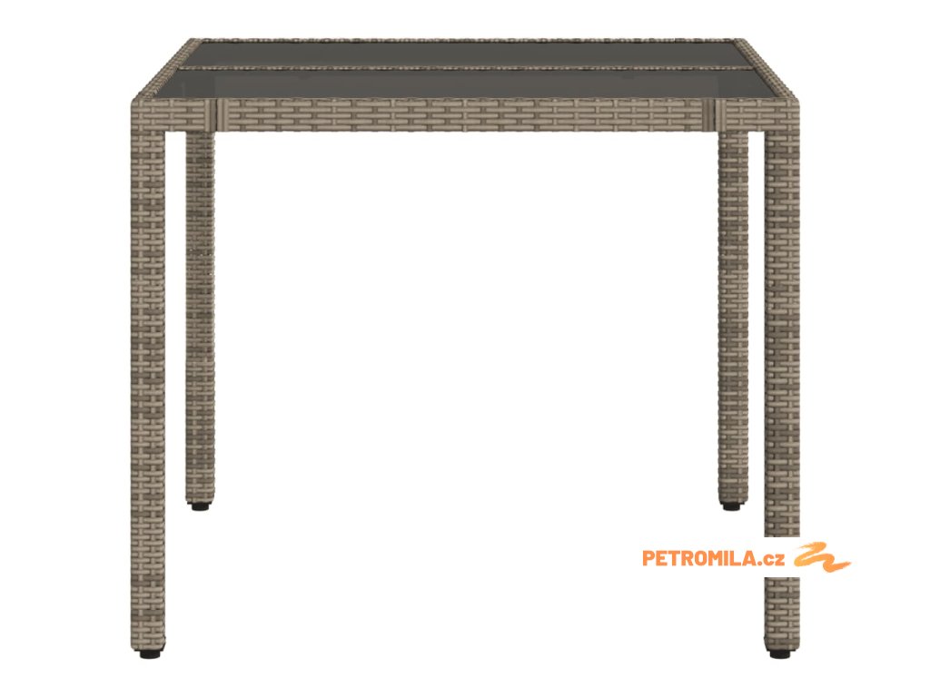 Zahradní stůl se skleněnou deskou šedý 90x90x75 cm polyratan