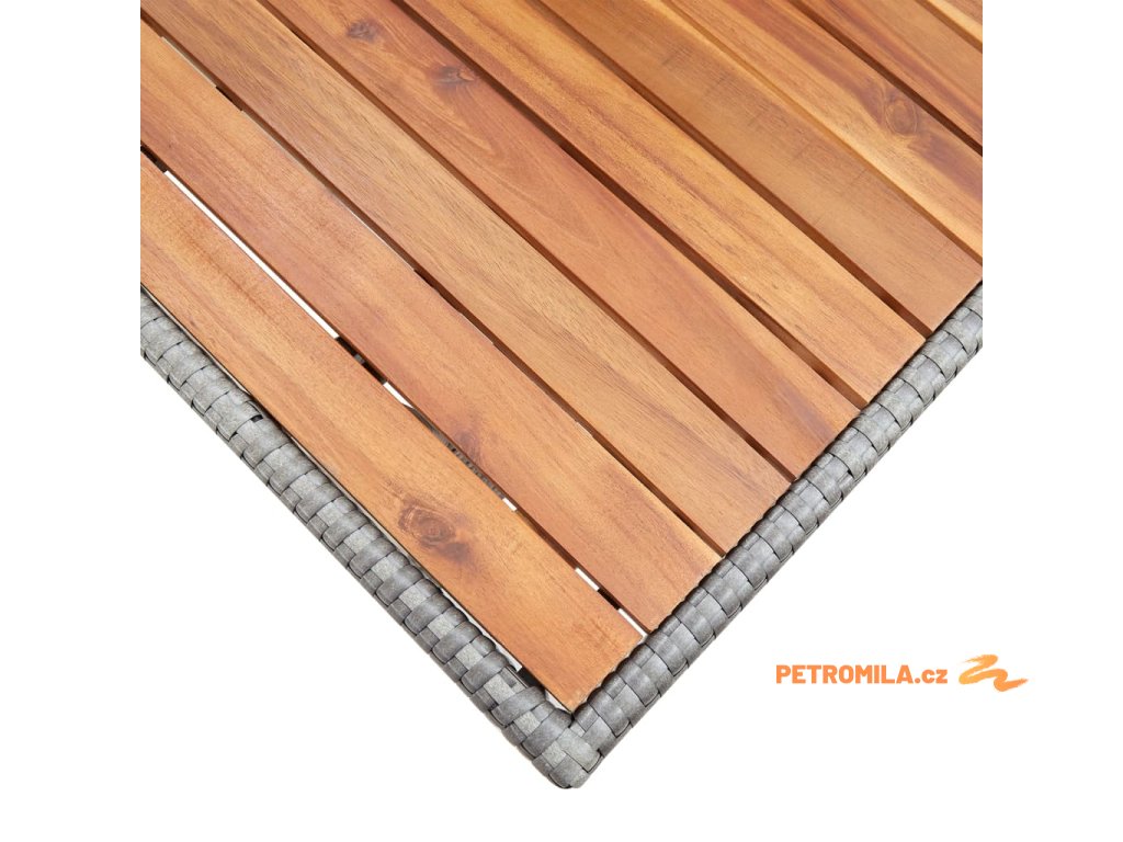 - Materiál: masivní akáciové dřevo, PE ratan, práškově lakovaná ocel