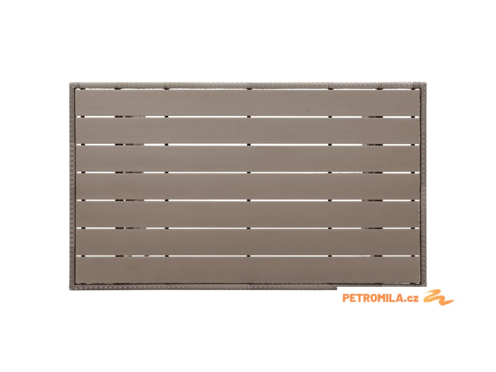 - Materiál: PE (polyethylenový) ratan, PS deska, práškově lakovaná ocel