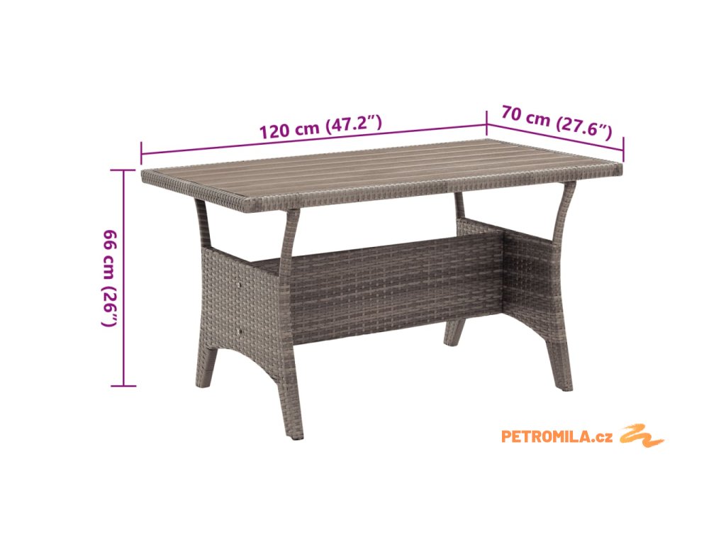 Zahradní stůl šedý 120 x 70 x 66 cm polyratan