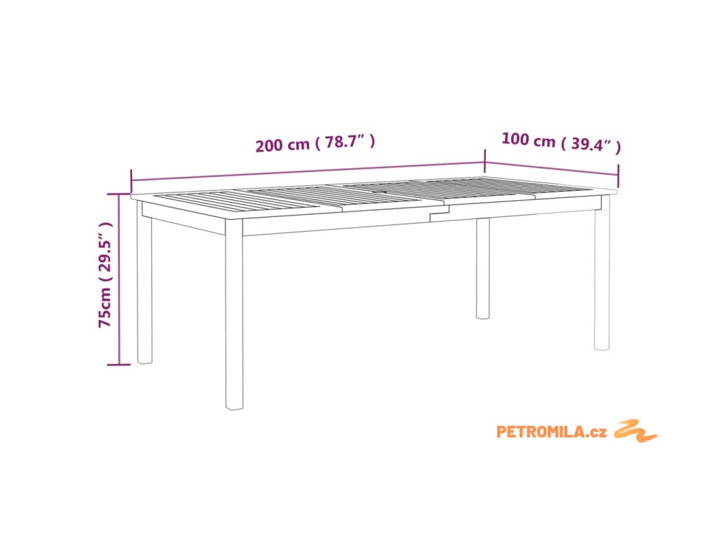 - Rozměry: 200 x 100 x 75 cm (D x Š x V)