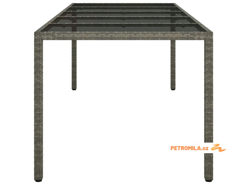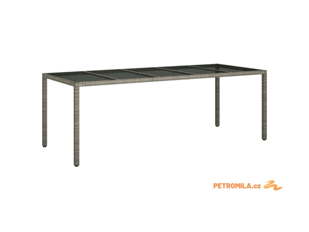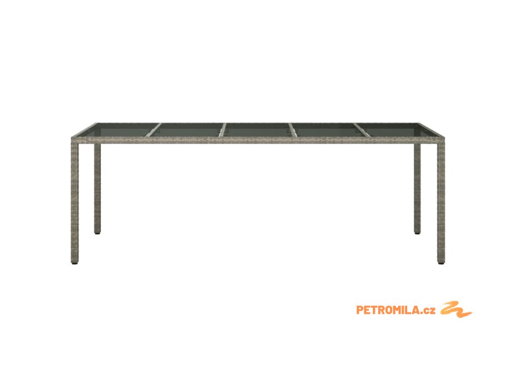 Zahradní stůl šedý 250 x 100 x 75 cm tvrzené sklo a polyratan