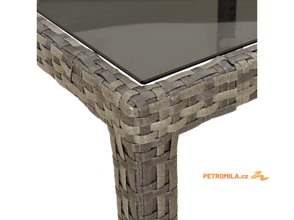 Zahradní stůl má práškově lakovaný ocelový rám opletený polyratanem, je tedy robustní a stabilní. Stolní deska je vyrobená z tvrzeného skla, takže se snadno čistí. Zahradní stůl se vyznačuje lehkou konstrukcí, můžete ho proto bez námahy přesunovat z místa na místo.