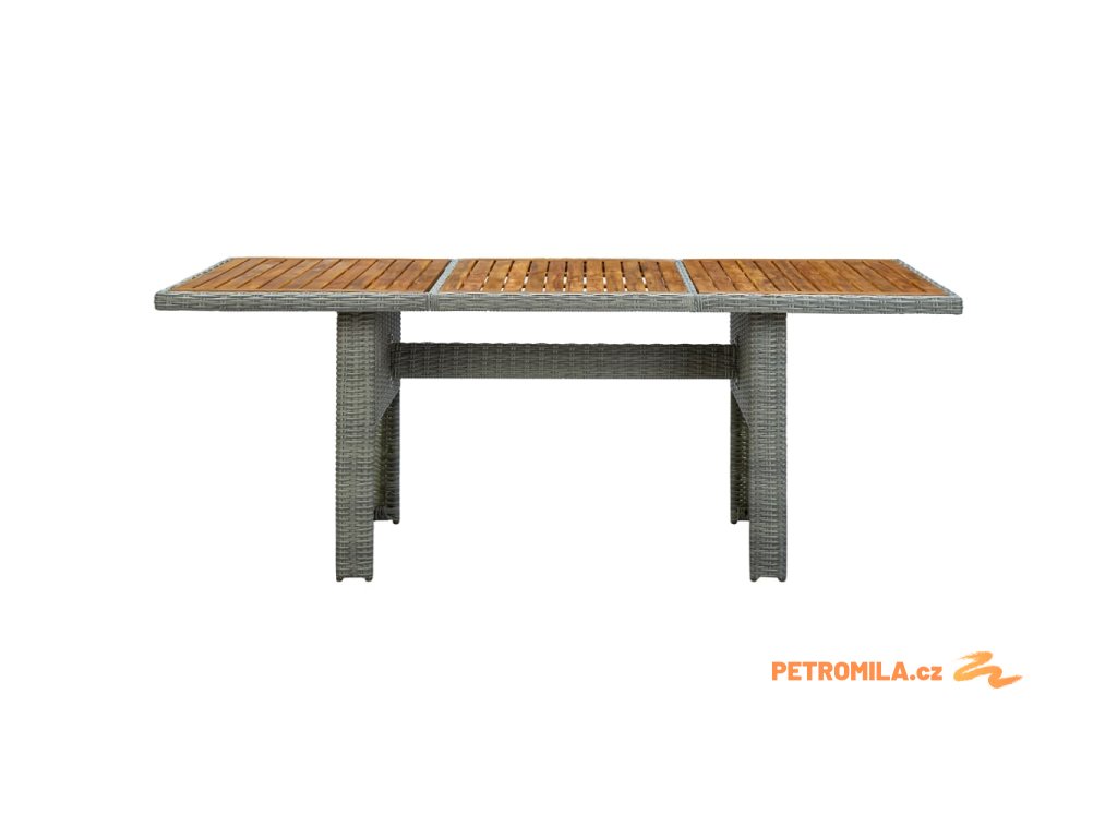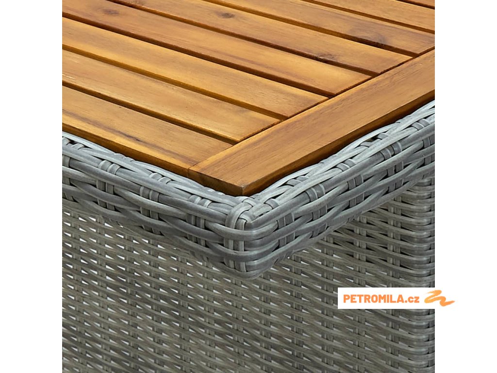 Zahradní stůl světle šedý polyratan a masivní akáciové dřevo