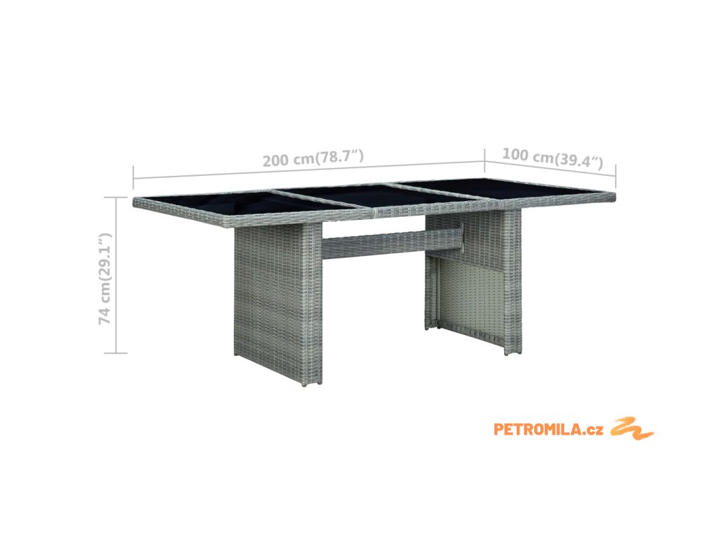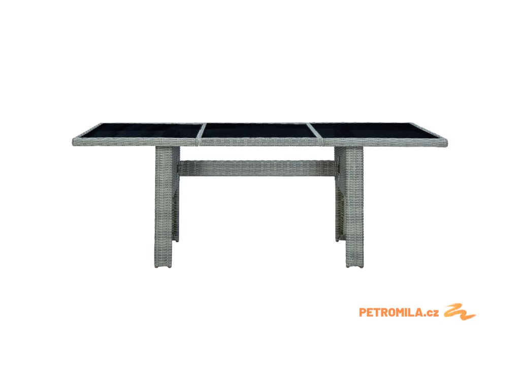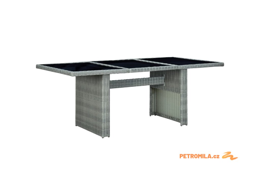 Zahradní stůl světle šedý polyratan a tvrzené sklo