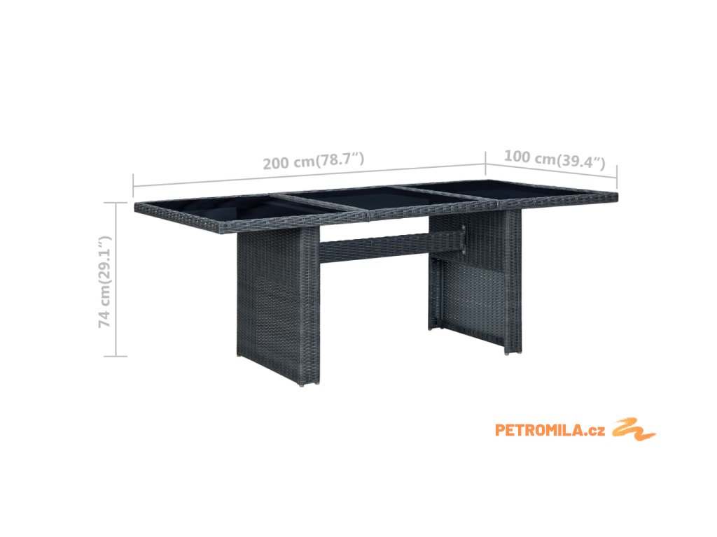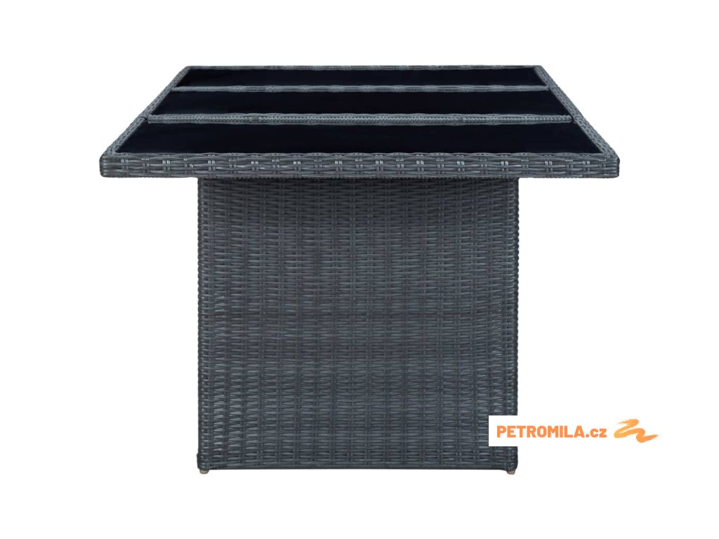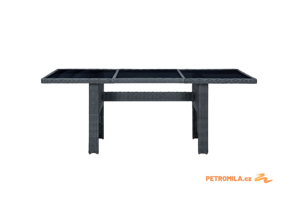 Zahradní stůl tmavě šedý polyratan a tvrzené sklo