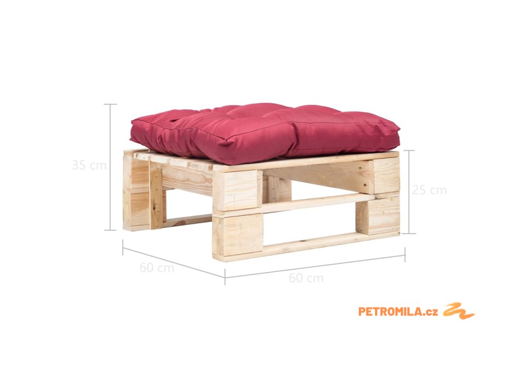 Zahradní taburet z palet s červenou poduškou přírodní dřevo
