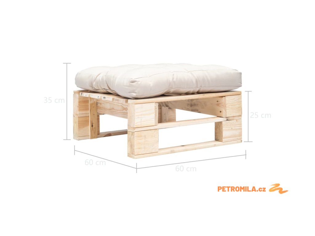 Tento zahradní taburet z palet je ideální k odpočinku a užívání si krásného počasí. Jeho nadčasový design z palet vnese na vaši zahradu, terasu či do obývacího pokoje rustikální kouzlo. Podušku můžete navíc sundat, a proměnit tak dřevěnou podnožku v konferenční stolek!