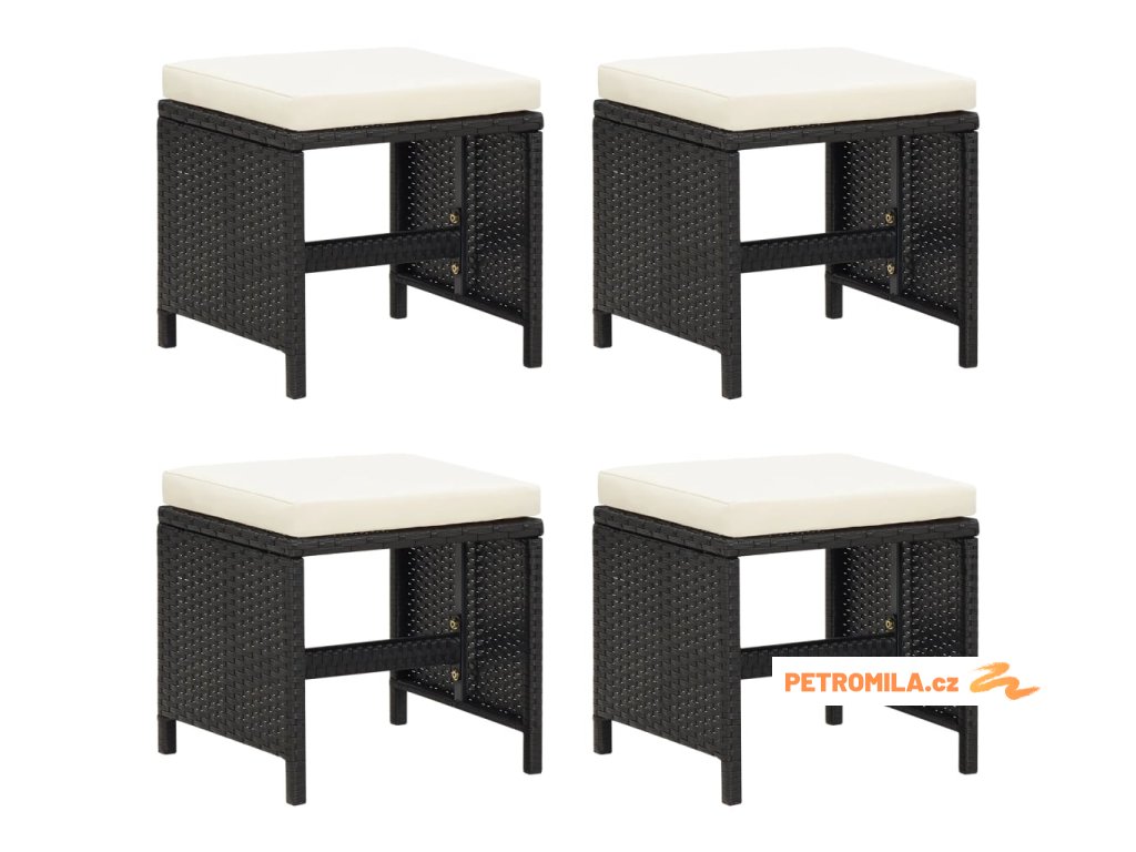 Zahradní taburety 4 ks s poduškami černé polyratan