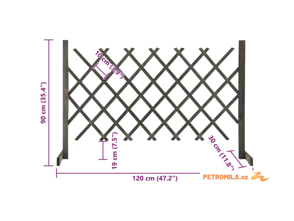 Plotový panel je vyrobený z masivního jedlového dřeva, takže je odolný a vhodný pro venkovní použití. Každý dílec lze roztáhnout do šířky až 120 cm, plot tedy využijete na zahrádkách různých velikostí. Obzvlášť působivě vynikne i podél chodníčků nebo záhonů.