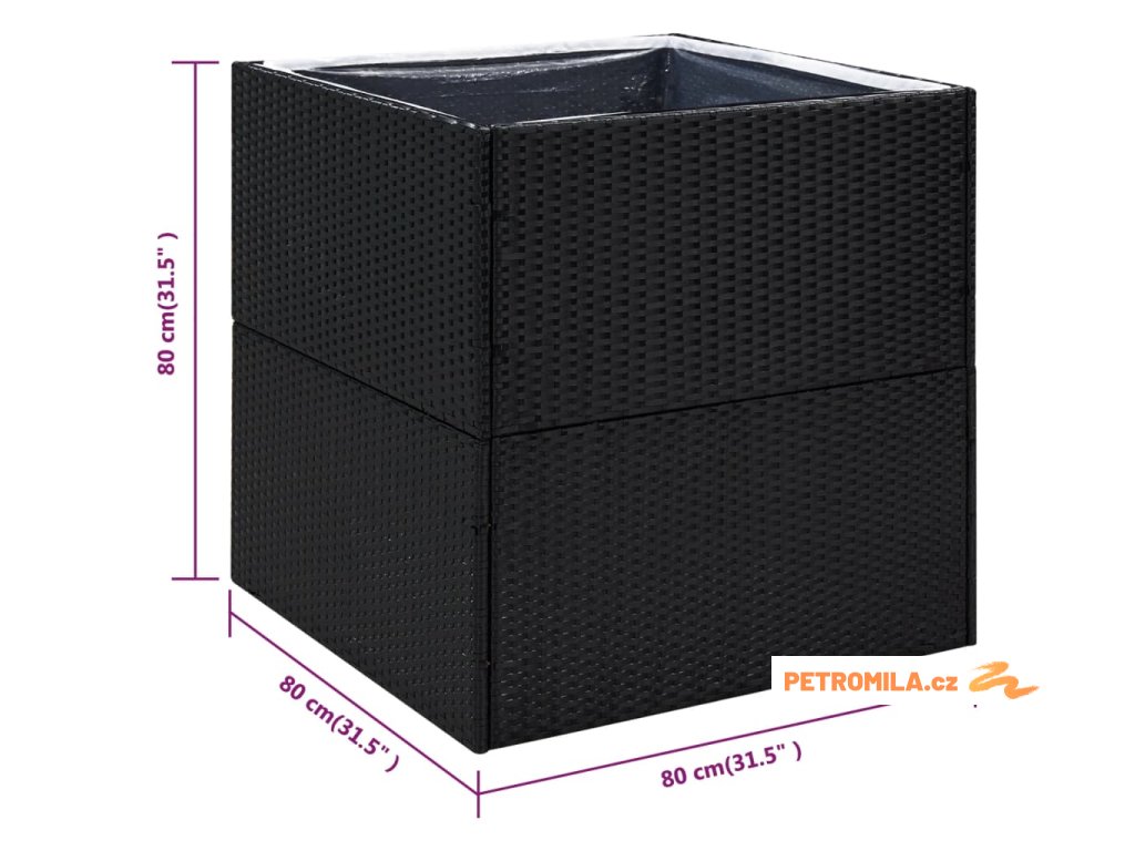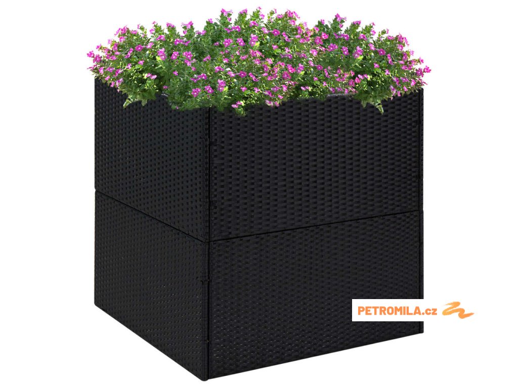 Zahradní truhlík černý 80 x 80 x 80 cm polyratan
