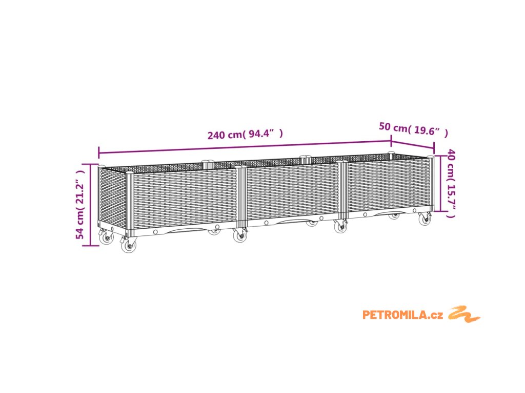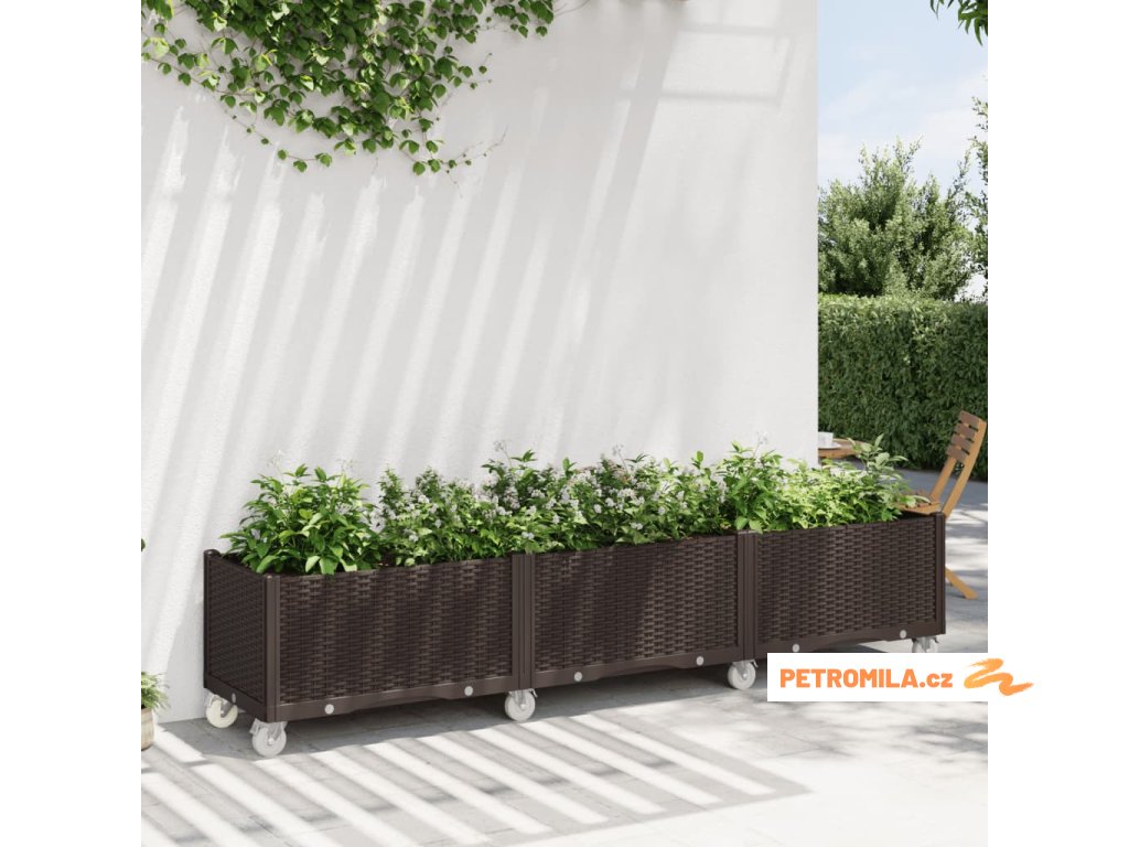 Zahradní truhlík na kolečkách hnědý 240 x 50 x 54 cm PP