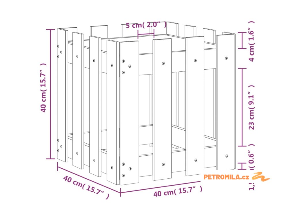 Zahradní truhlík plotový design 40x40x40 cm masivní borovice