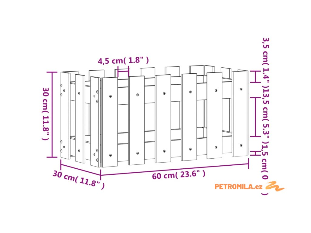 Zahradní truhlík plotový design 60x30x30 cm masivní douglaska