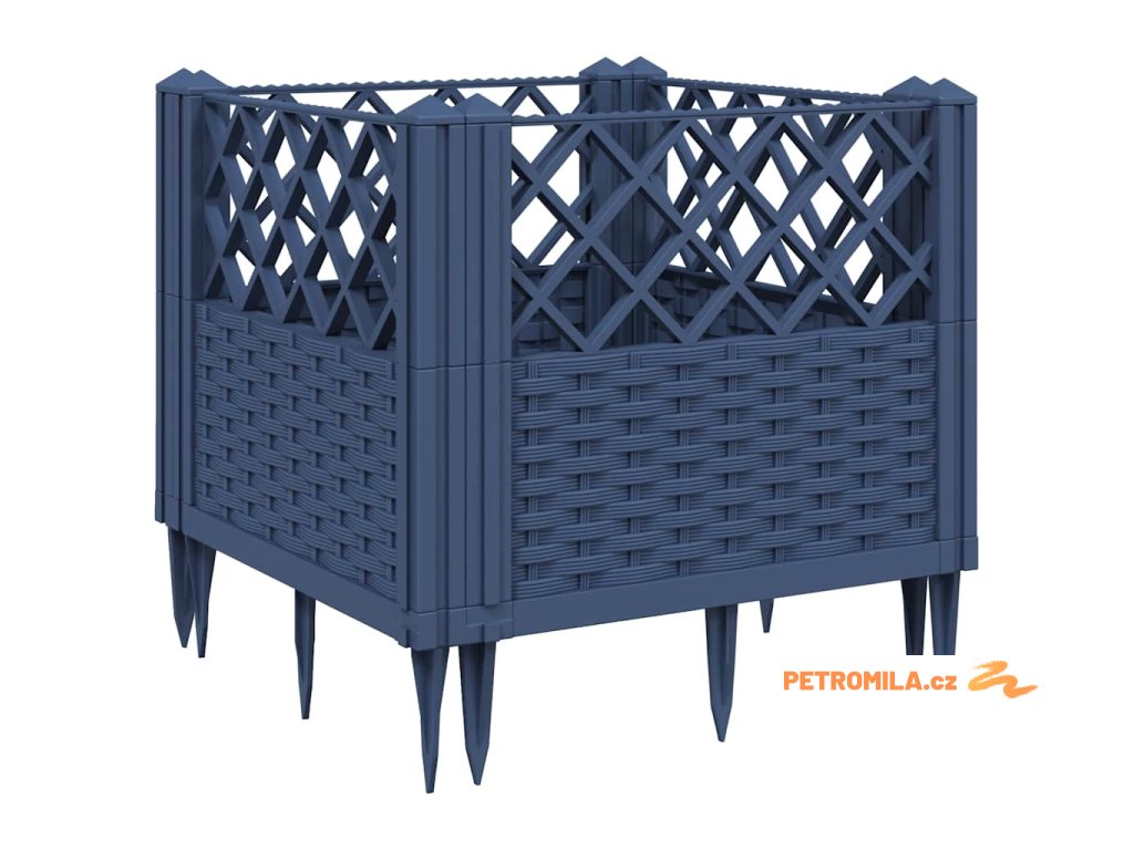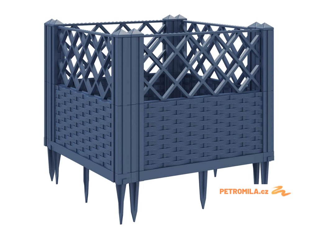 Zahradní truhlík s kolíky modrá šedá 43,5 x 43,5 x 43,5 cm PP