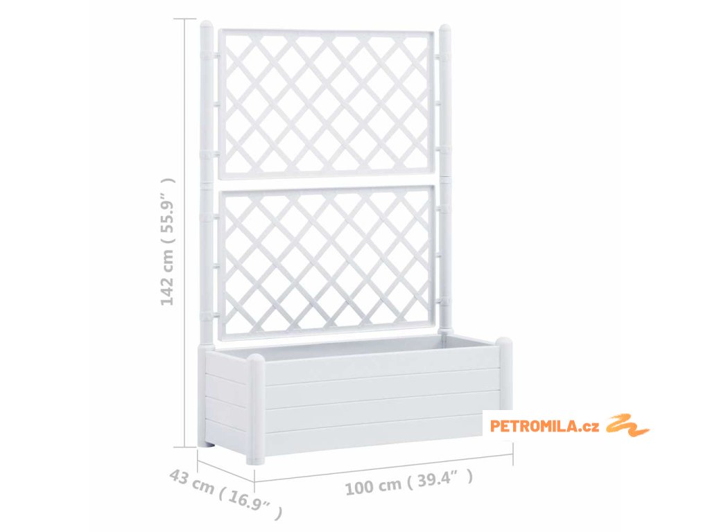 Zahradní truhlík s treláží 100 x 43 x 142 cm PP bílý