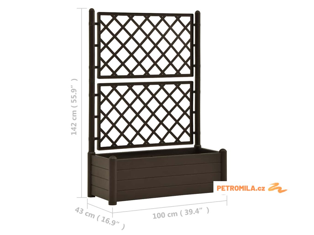 Zahradní truhlík s treláží 100 x 43 x 142 cm PP mokka