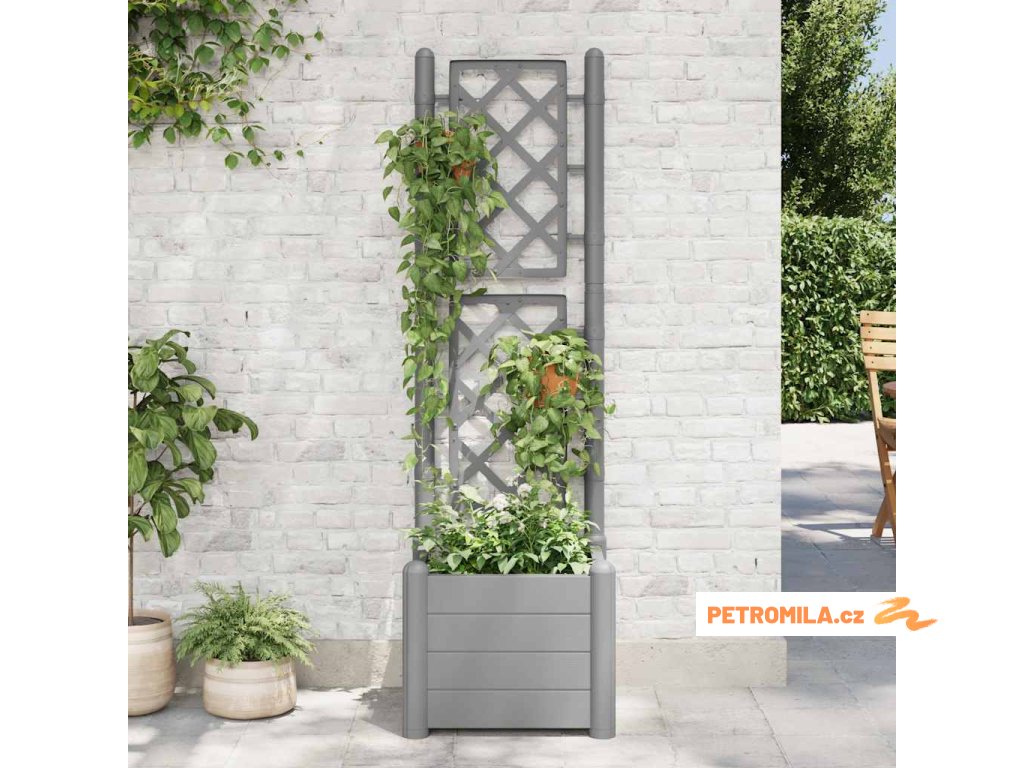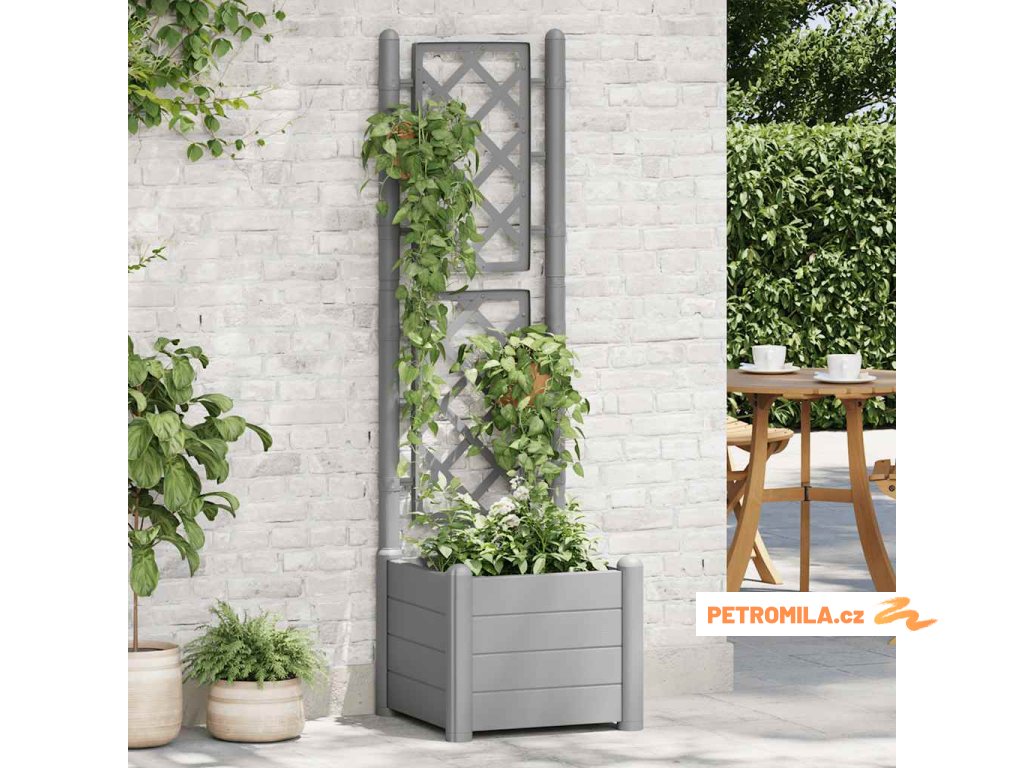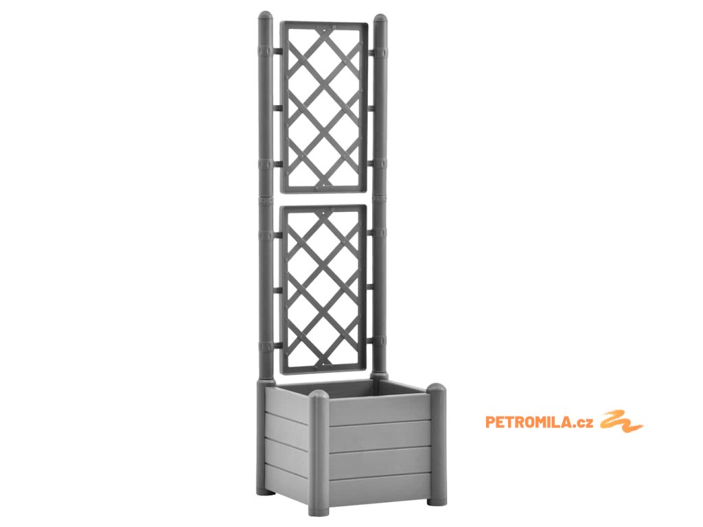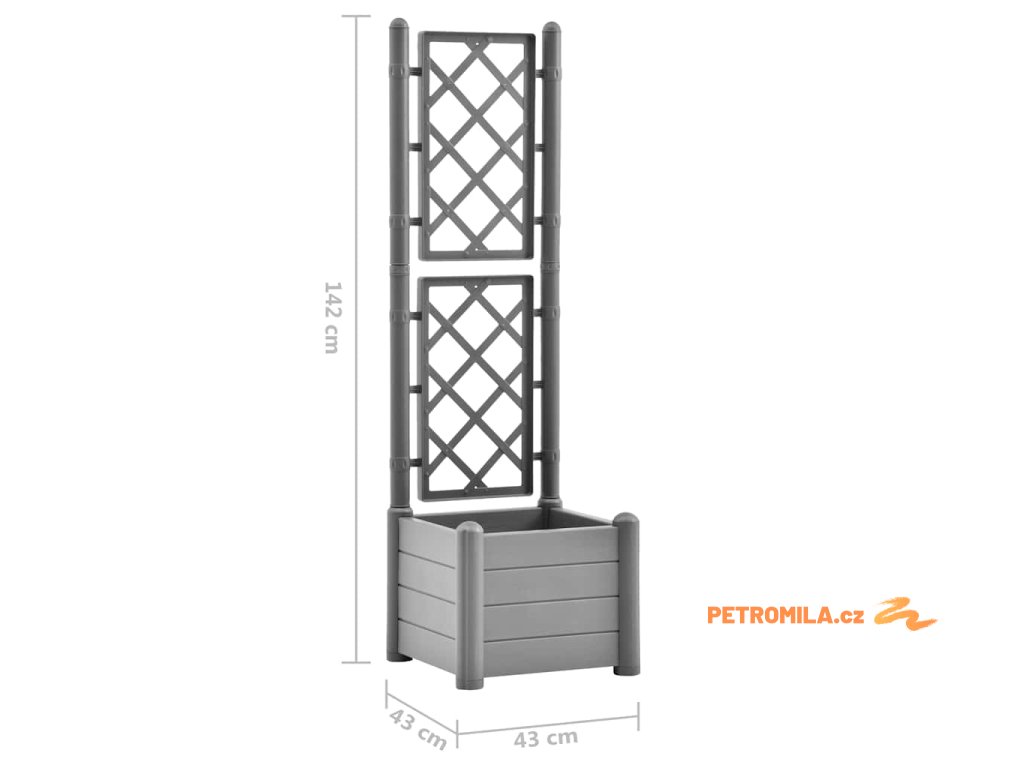 Zahradní truhlík s treláží 43 x 43 x 142 cm PP kamenný šedý