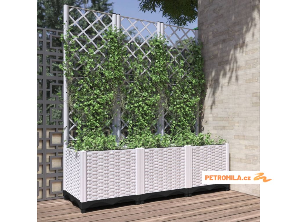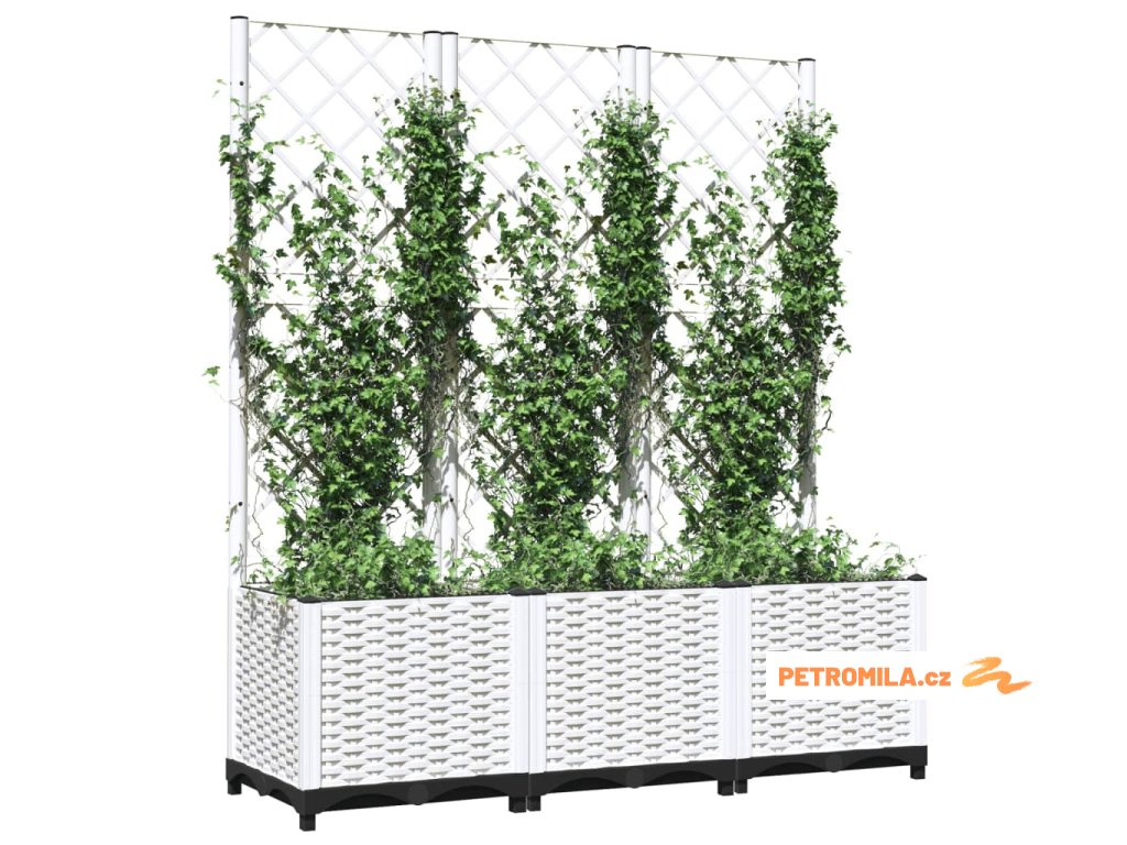 Zahradní truhlík s treláží bílý 120 x 40 x 136 cm PP